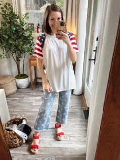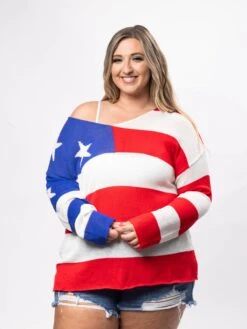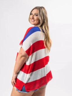 American Flag Loose Fit V-Neck Light Knitted Top | S-3X Americana