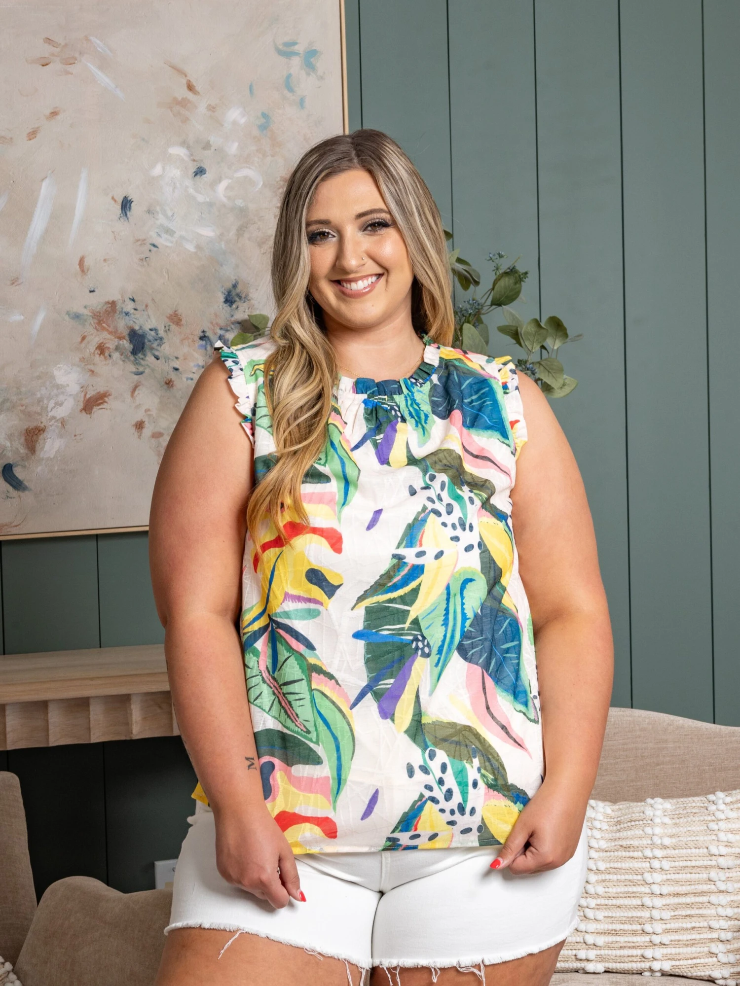 Erin is 5’9, 36C bra, typically wears size L/XL in tops and 14/16 in denim. Wearing size XL