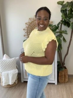 The “Act Natural Top” has arrived! This sleeveless sweater look is to die for! We are loving the ruffle detail! Be sure to snag one before they are gone!