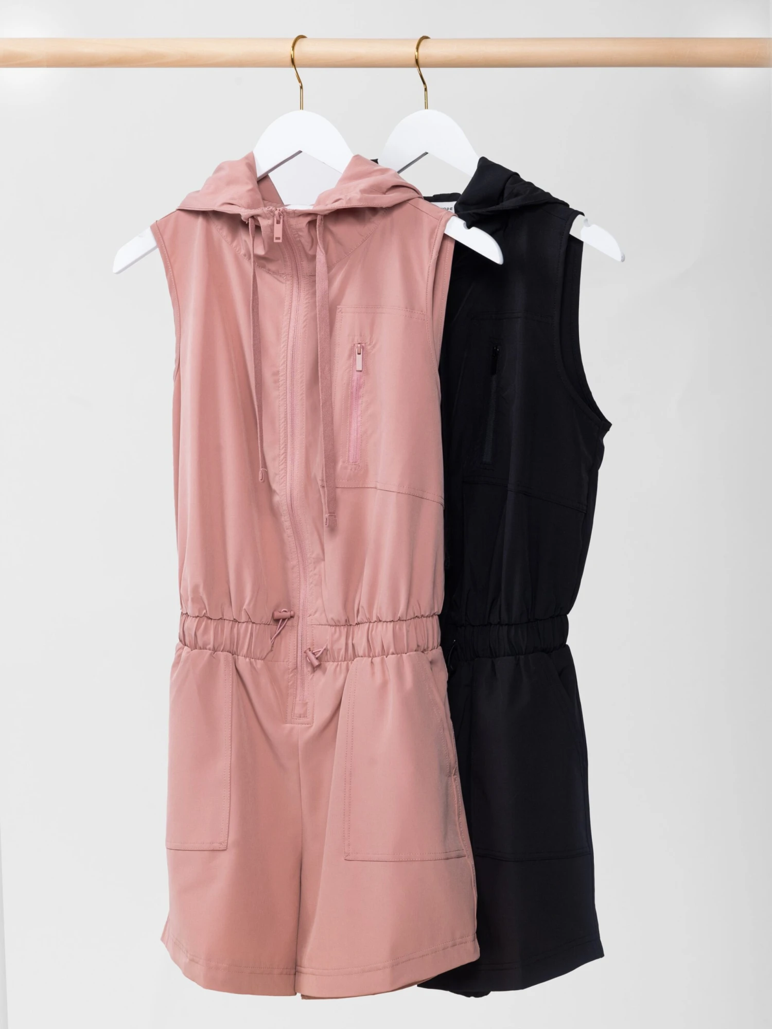 Features: Sleeveless, Quarter Zip, Pockets, Hood, Elastic Waist