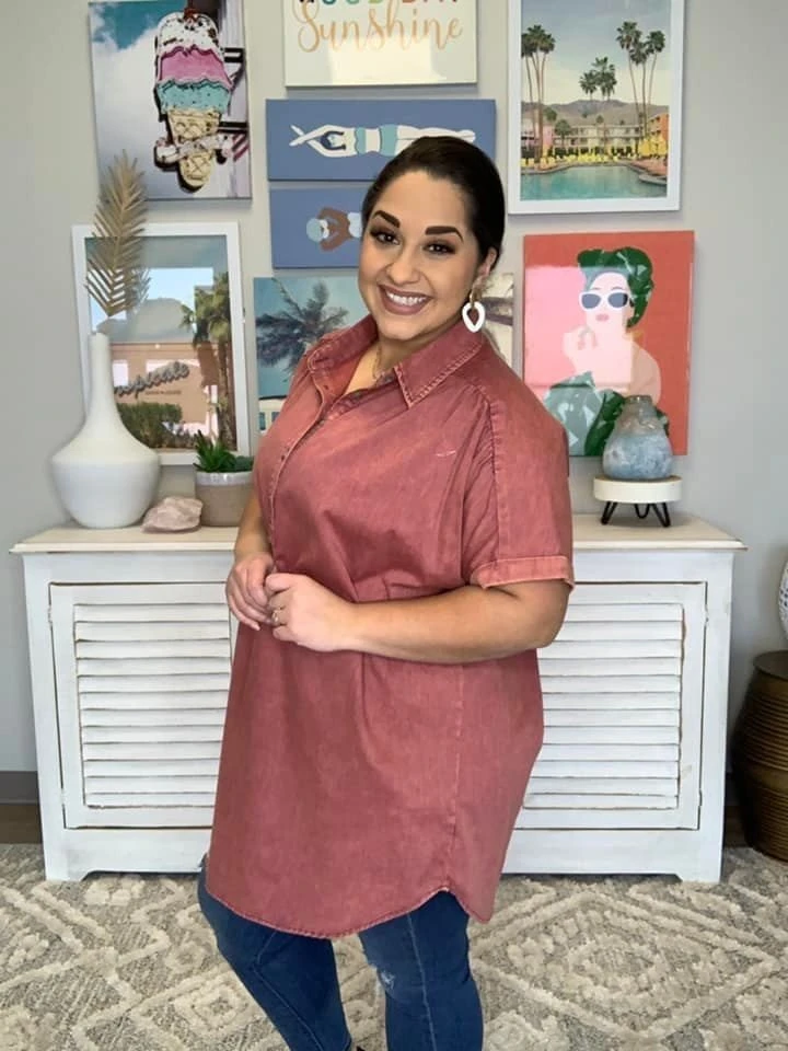 The “Aiming High Top” has arrived! This short sleeve summary up top is calling your name! With some textured details and a curved hem, you know you want this one! Pair with denim or shorts, the possibilities are endless!
