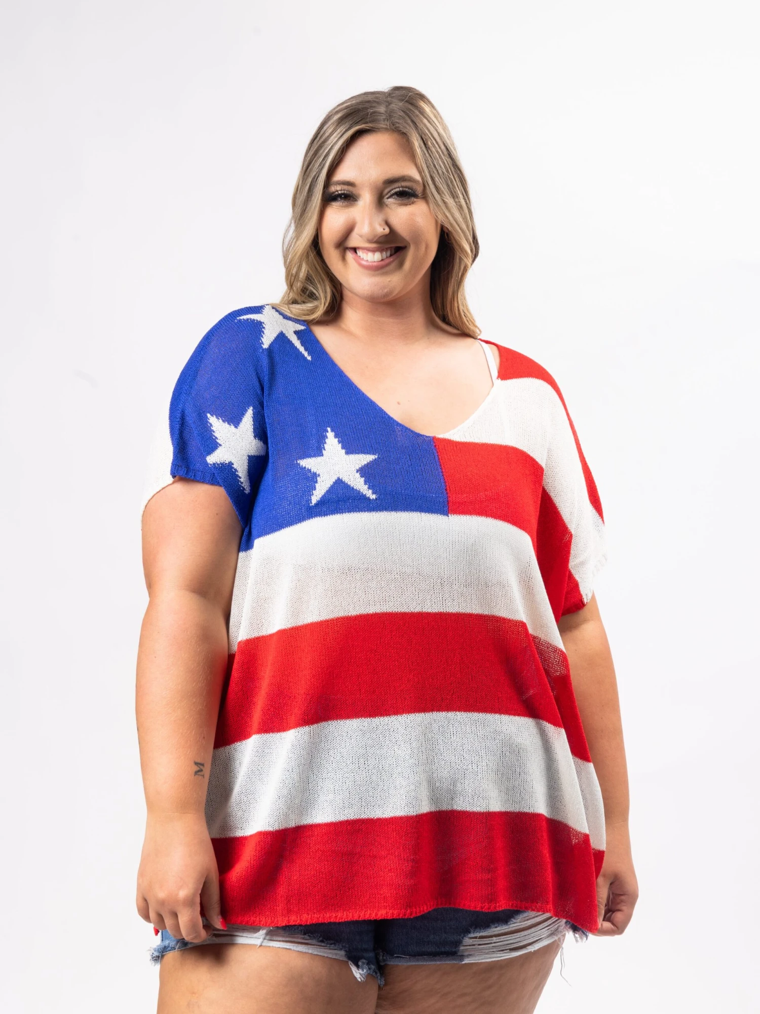 Erin is 5’9, 36C bra, typically wears size L/XL in tops and 14/16 in denim. Wearing size 1X