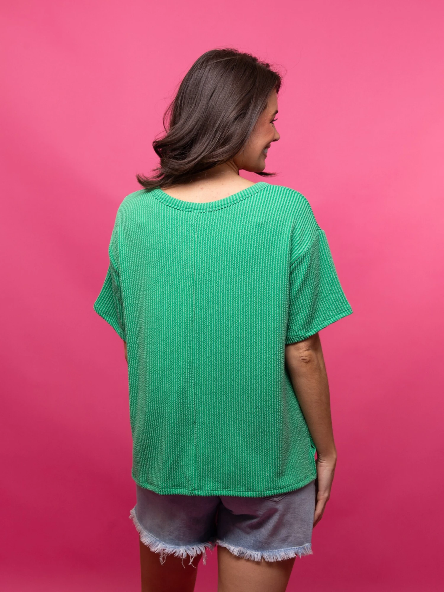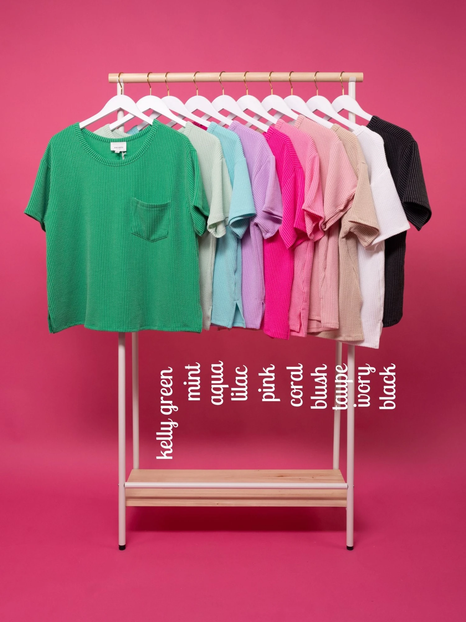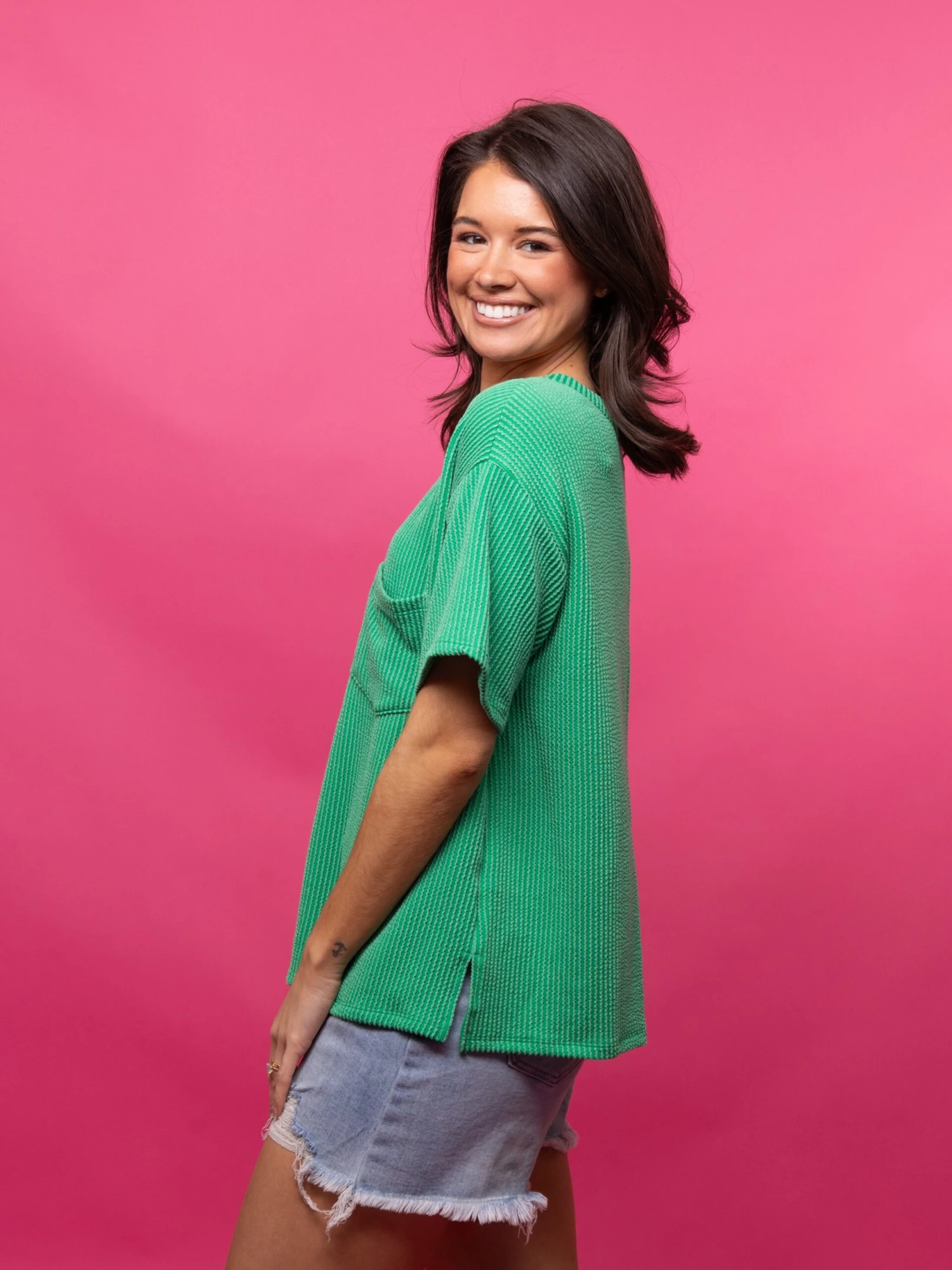Features: Short Sleeves, Round Neck, Ribbed, Chest Pocket