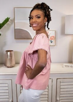 Hey, Ladies! We are so excited about the Azalea Top! It is a pretty pink and features a back tie detail. It is the perfect top for spring and summer!