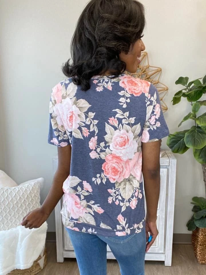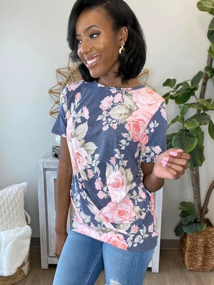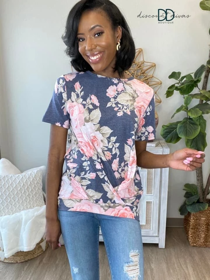 The “Be There Soon Top” has arrived! This floral print top is a must have! With a front layer detail, you do not want to miss out here! Pair with denim and sandals for the perfect look! Snag one before they are gone!