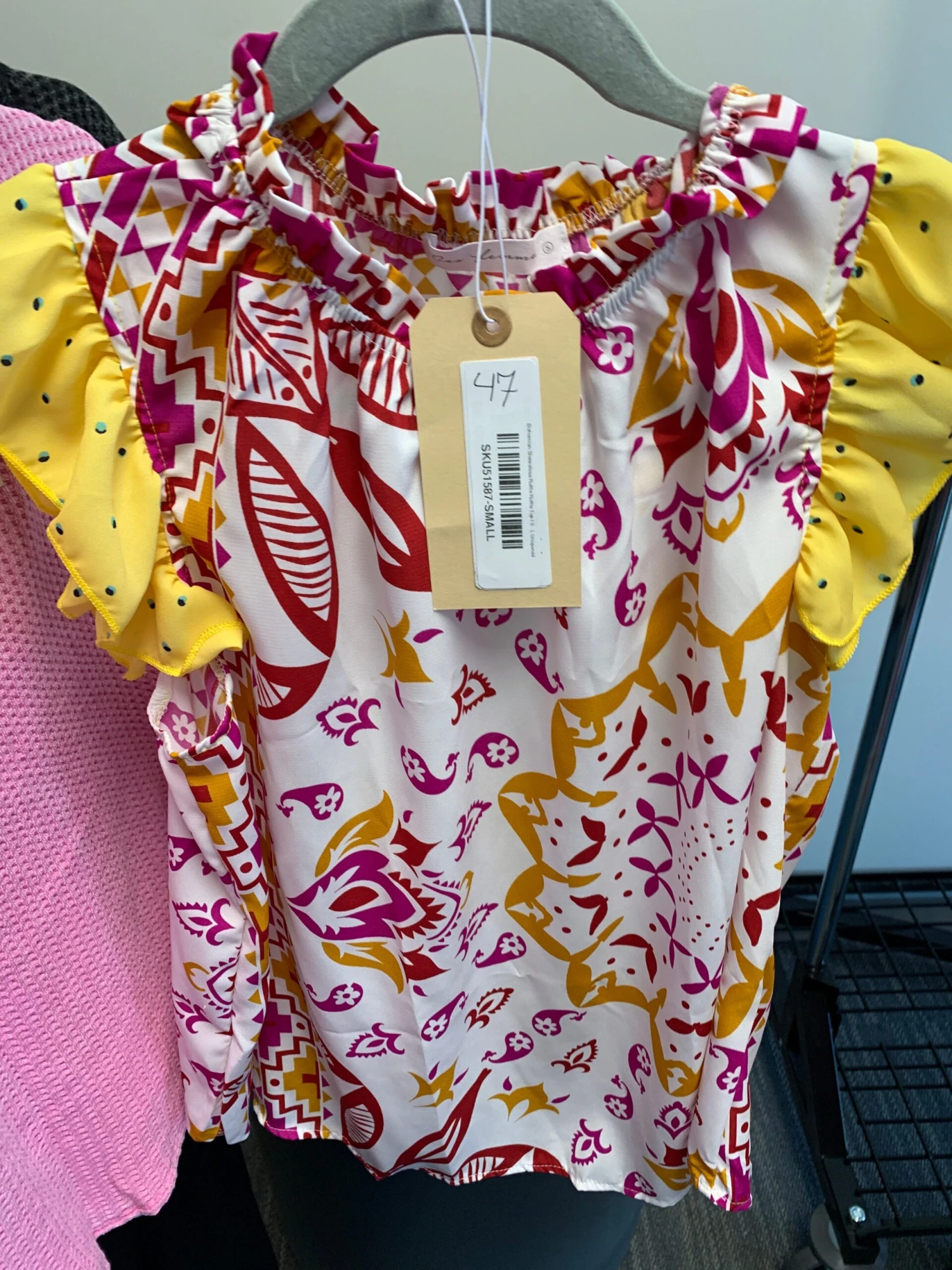 Features: sleeveless, ruffle neck, ruffle sleeve