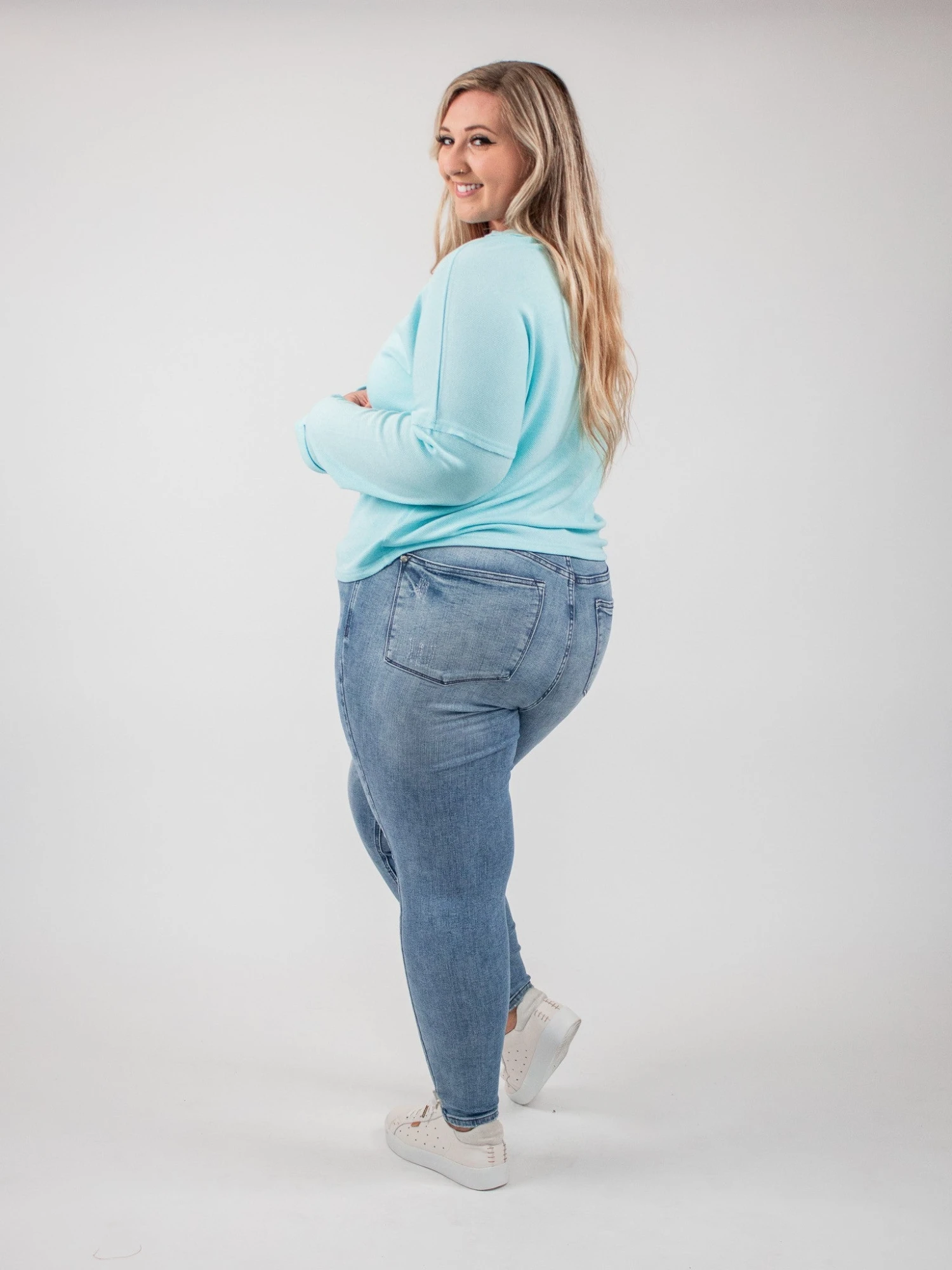 The combination of summary detailing, a loose fit, long sleeves, and a round neck design creates a adorable and easy-to-wear shirt! You know you need this piece in your collection! Snag this steal of a deal while you can!