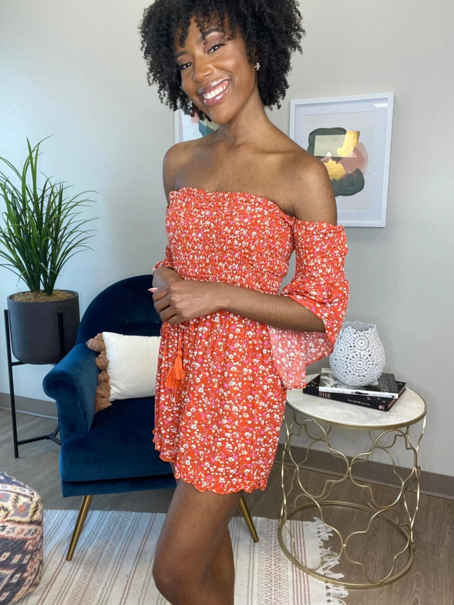 The “Call Me Up Romper” has arrived! This floral print romper is a must have! With long bell sleeves and an off the shoulder design, this one is so stylish! Perfect for spring or summer, you do not want to miss out on this one ladies!