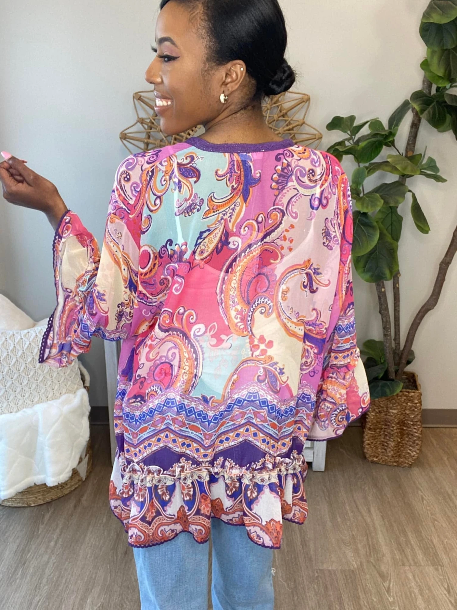 The “Change My Heart Top” has arrived! This open front top with a tassel tie is a must have! With ruffle sleeves and a gorgeous pattern, you do not want to miss out here! Snag one before they sell out!