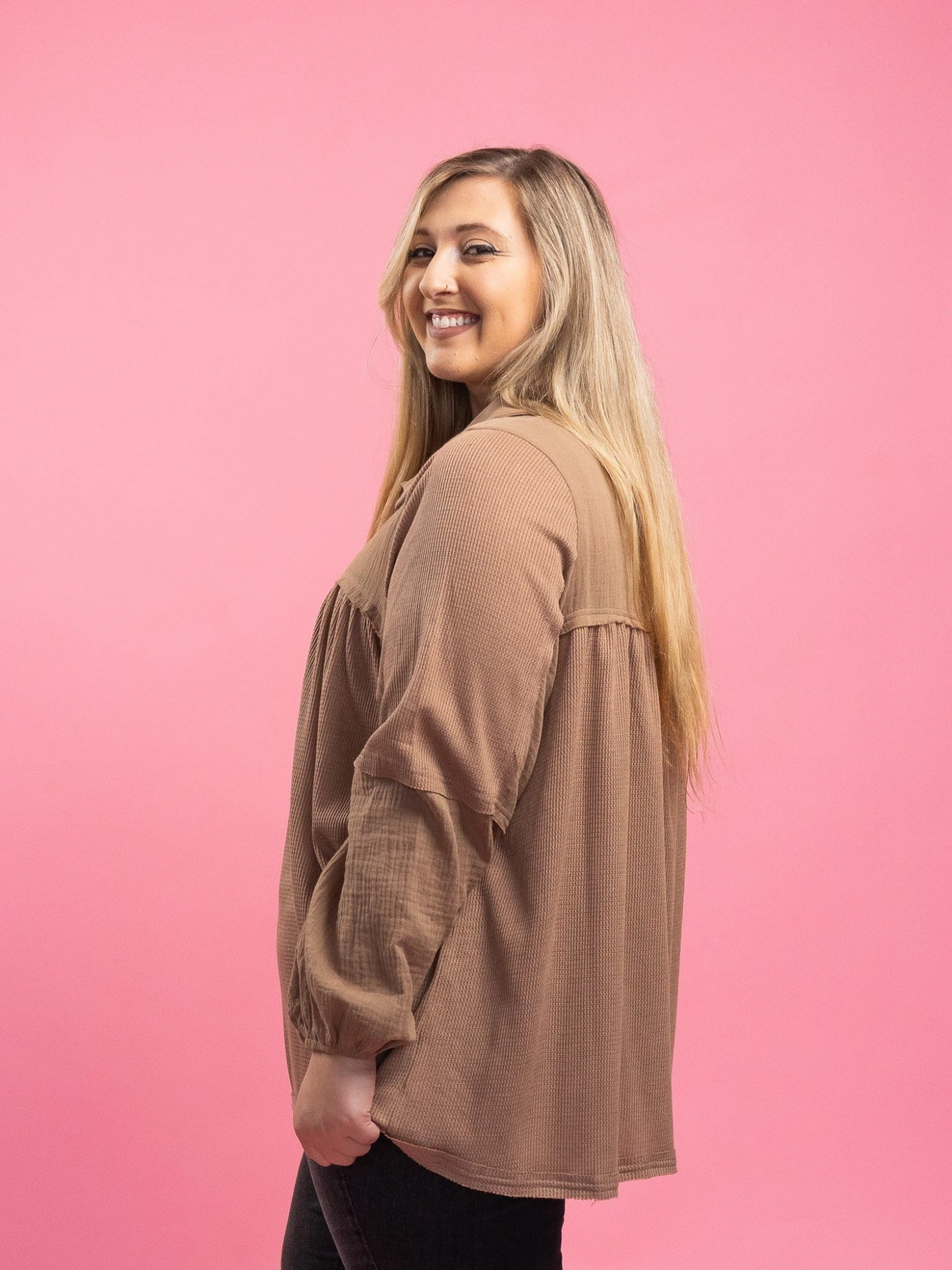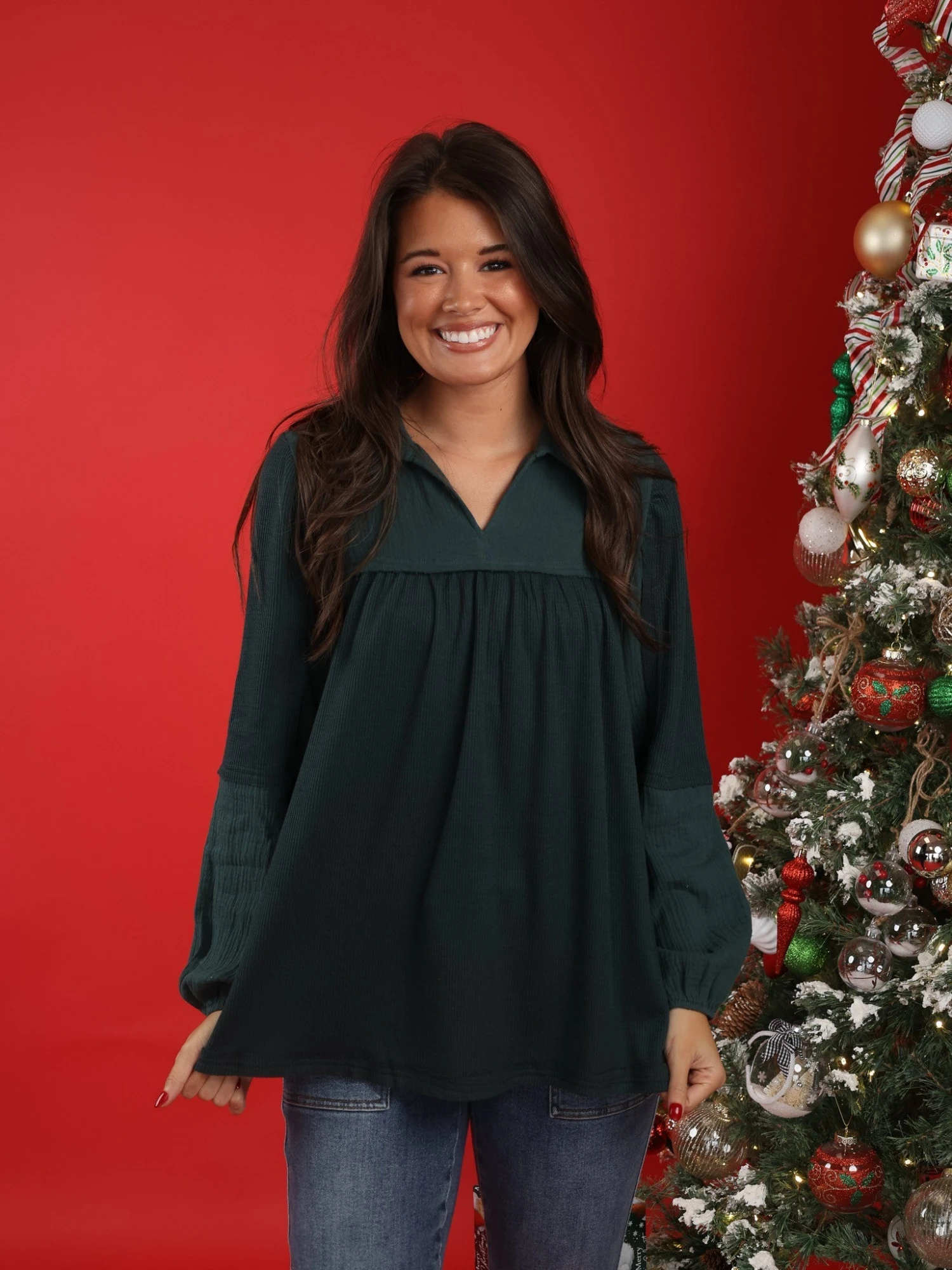 Elevate your style effortlessly with this flattering top! Pair with your favorite bottoms to create a look that effortlessly transitions from day to night! You won’t regret snagging!
