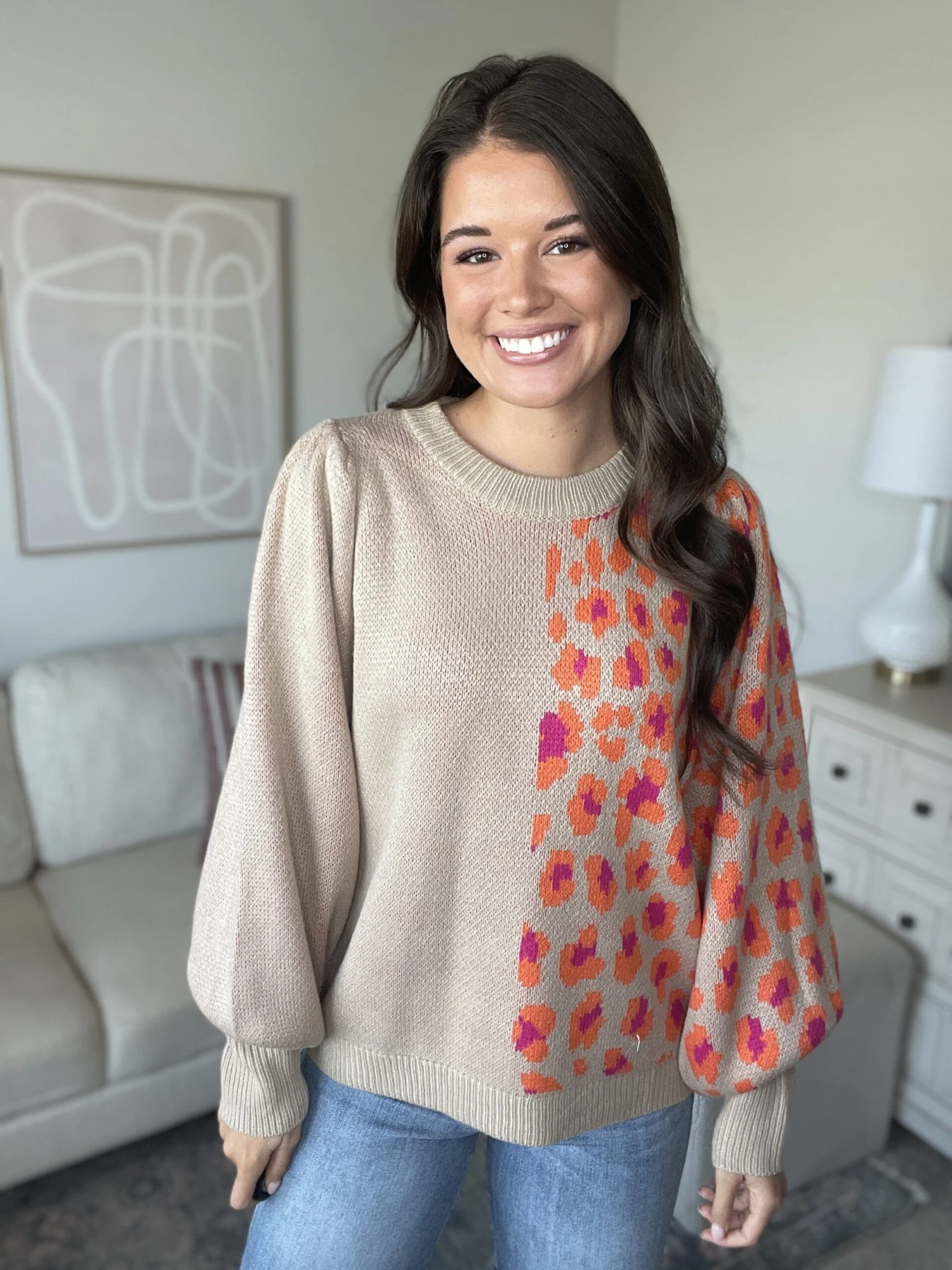 This sweater is everything! We are so in love with the super cute print! The perfect pop of color for your fall wardrobe!