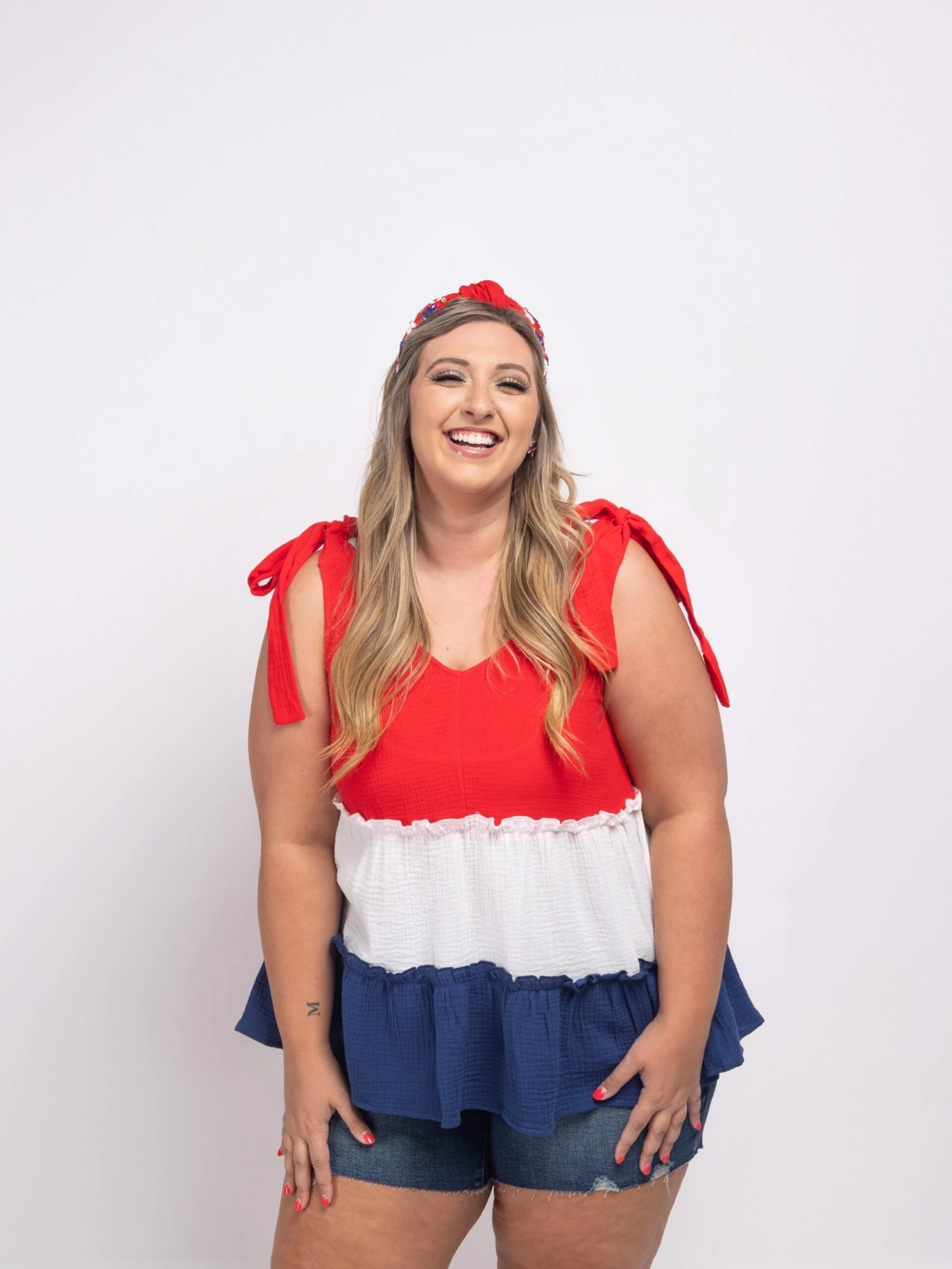 Erin is 5’9, 36C bra, typically wears size L/XL in tops and 14/16 in denim. Wearing size XL