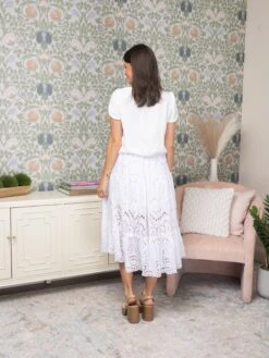 Features:Tassel Elastic Waist,Eyelet Long Skirt,Round Hem