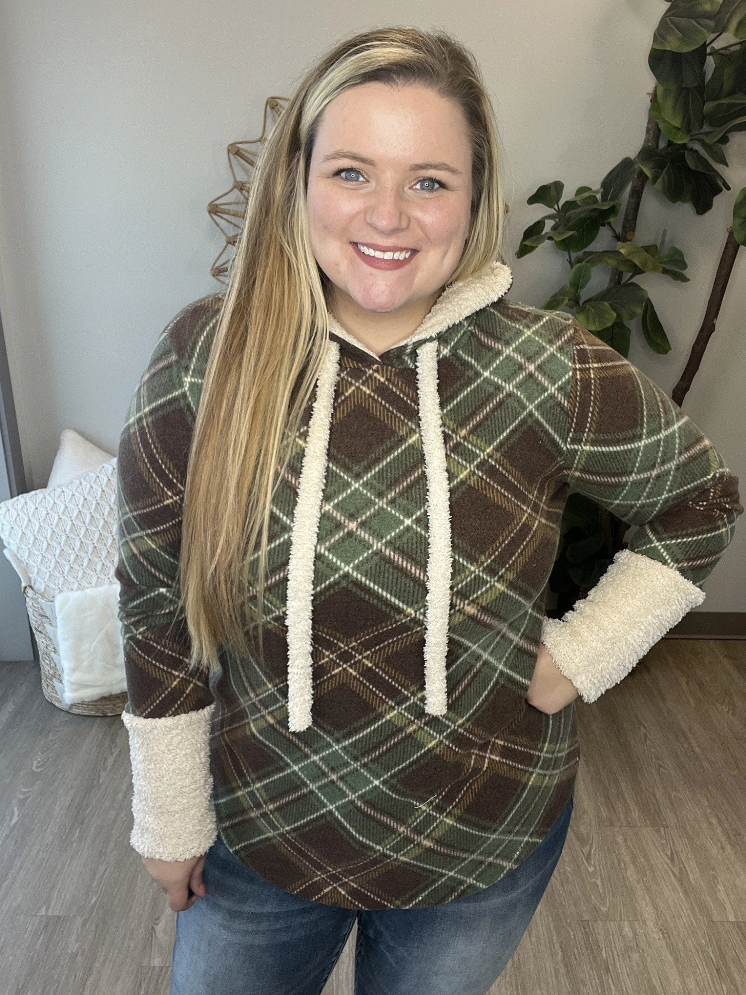 The “Creative Contrast Sweatshirt” has arrived! This plaid contrast hoodie is just what you need! Perfect for everyday wear, you cannot go wrong here! So stylish and trendy for the fall, snag one before they are gone!