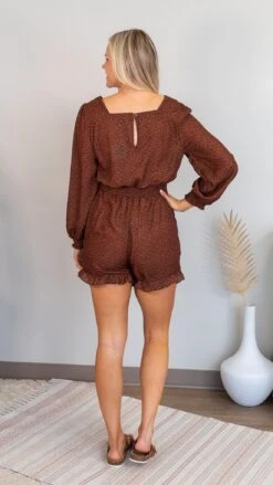 Fall in love with the Dance To The Jazz Printed Romper!! This romper is so sophisticated and features a square neck, long sleeves, and an elastic waist. Pair it with heels and you’ll be ready to dance the night away!!