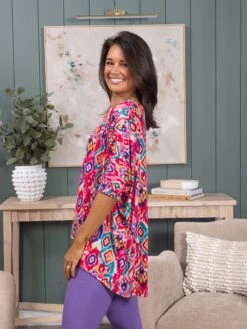 Features: Wrinkle Free, Dolman Sleeve, Round Neck, Print