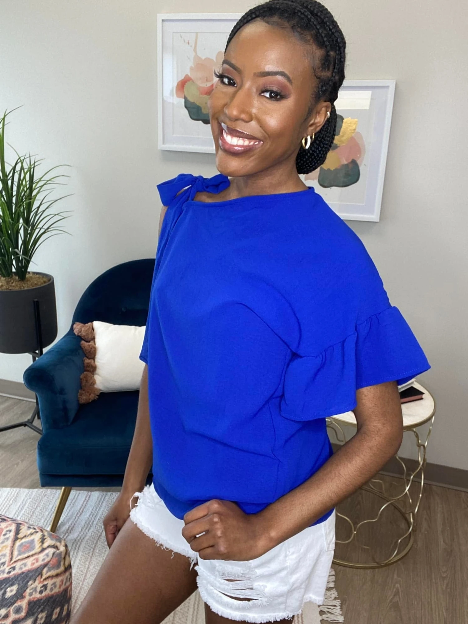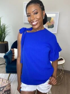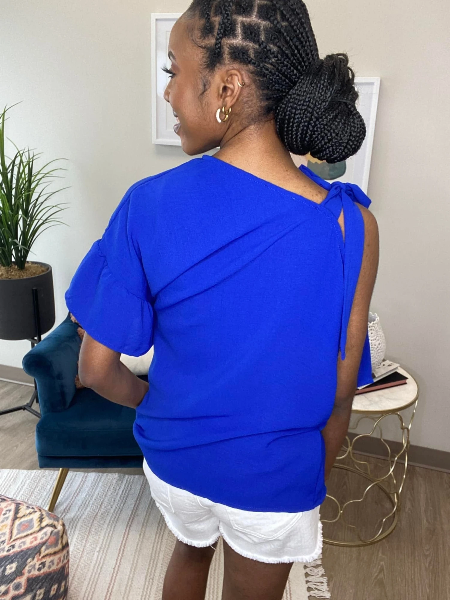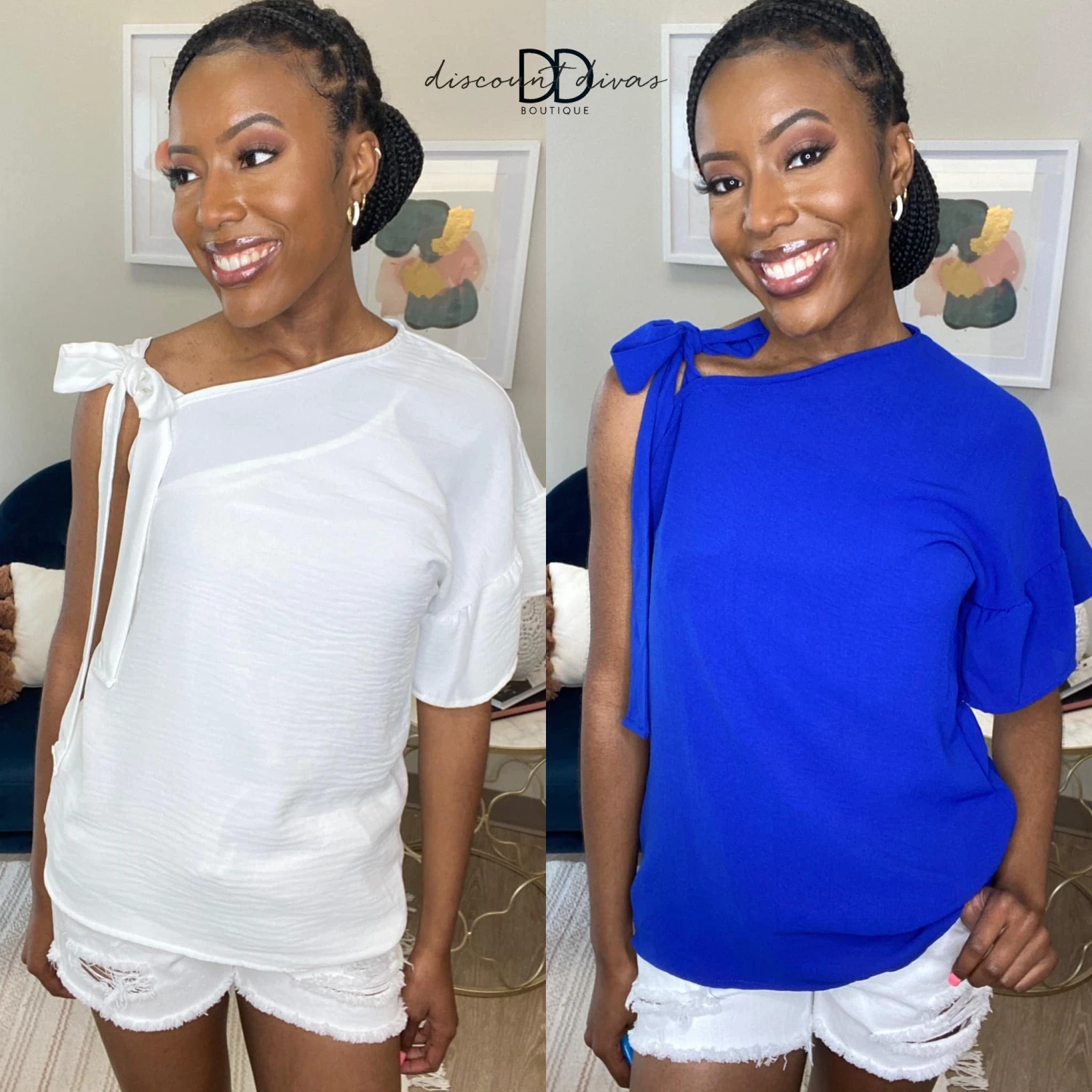 The “Didn’t You Hear Top” has arrived! This adorable one shoulder top is stunning! We are loving the shoulder tie and ruffle sleeves too! Be sure to snag before it is too late!
