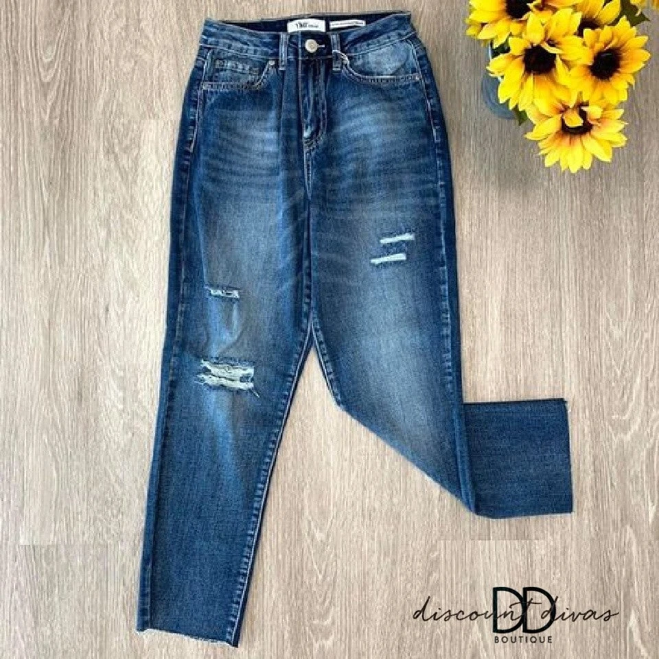 Features: Raw Hem, ankle length, high rise