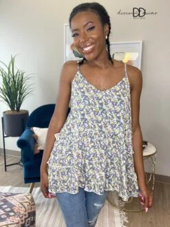 Features: Sleeveless, Floral Print, Tiered Top, Adjustable Straps