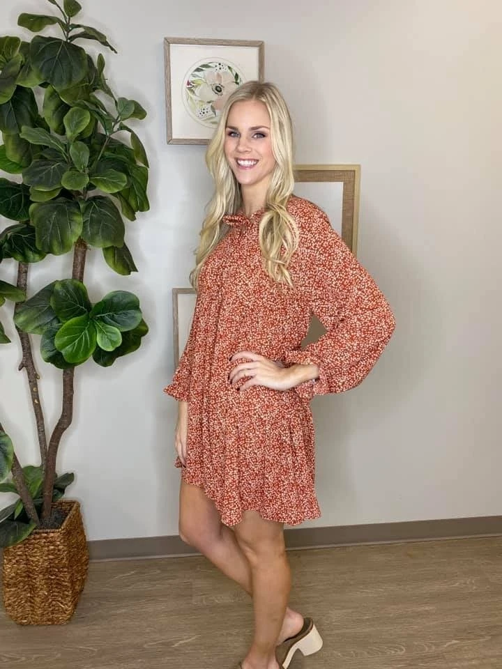 The “Don’t Look Now Dress” has arrived! This dress is to die for! The floral design with the tie neck is super flattering! Perfect for any season so be sure to snag one while you can!