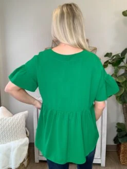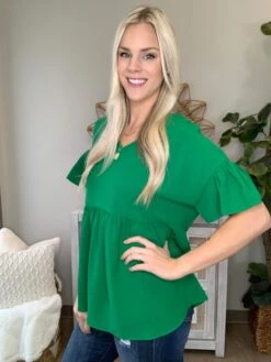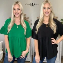 The “Dreaming On Top” has arrived! This ruffle sleeved top is a must have! In a beautifully bold green and nice basic black, there are options for everyone! Pair either with denim and wedges for the perfect look! Snag one, or both, before they sell out!