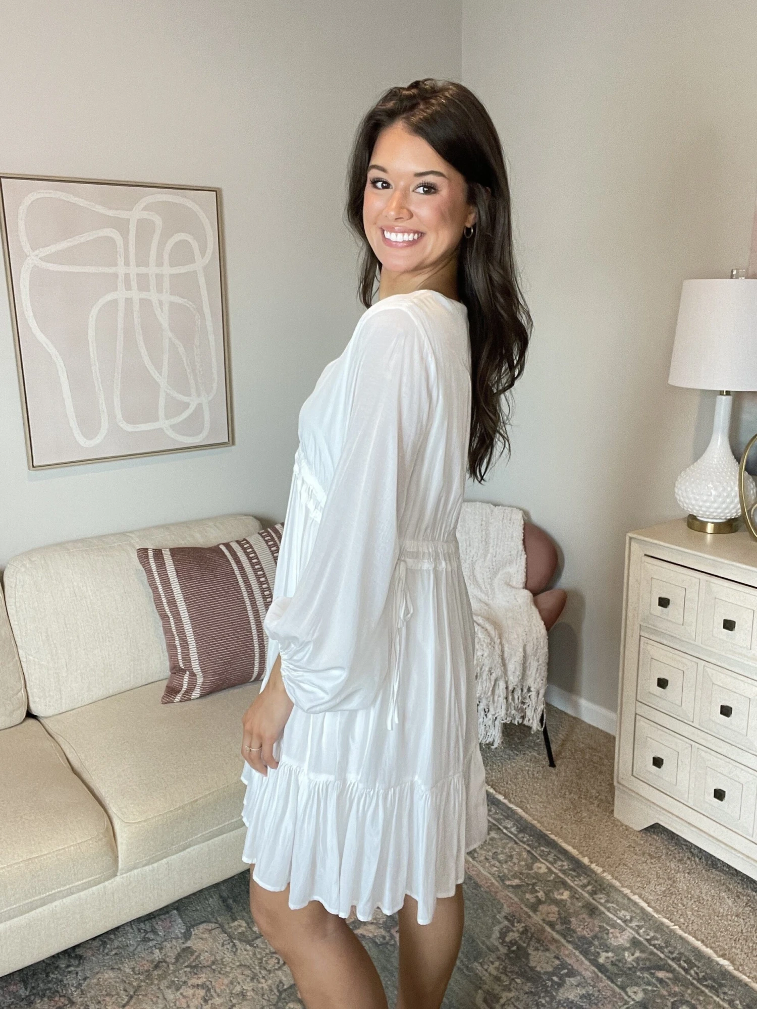 Features: V Neck, Long Sleeves, Elastic Waist