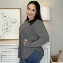 Features: solid print, ribbed, babydoll, long sleeve, thumbholes