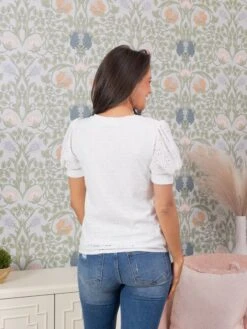 Features: Eyelet, Solid Top with Puffed Sleeves