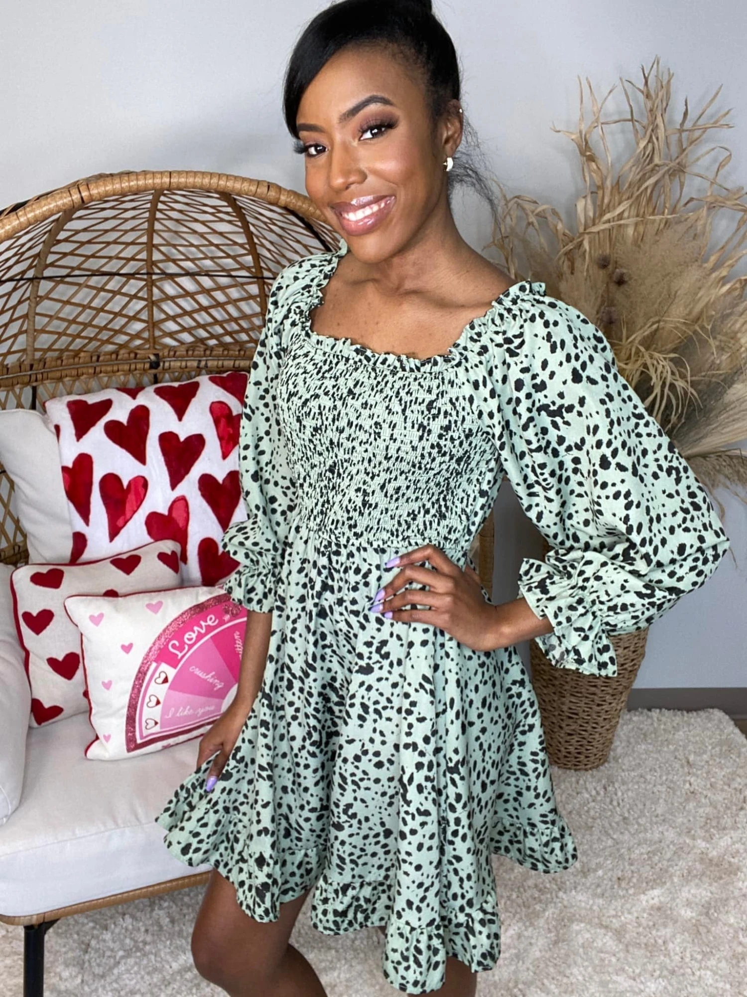 Features: Smocked, Baby Doll Dress, Dalmatian Print, Long Sleeves