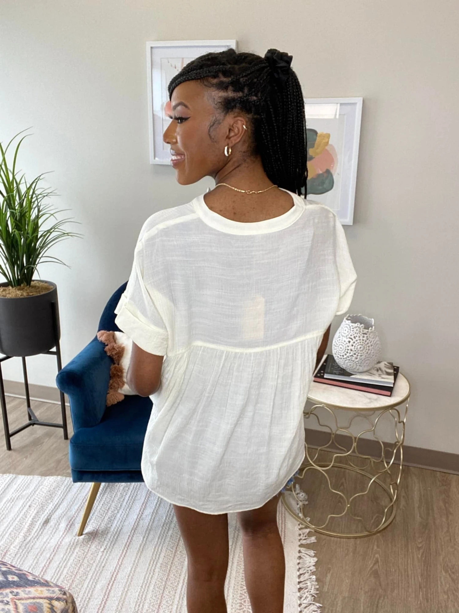 Features: Solid Crinkle Short Sleeve V Neck Top