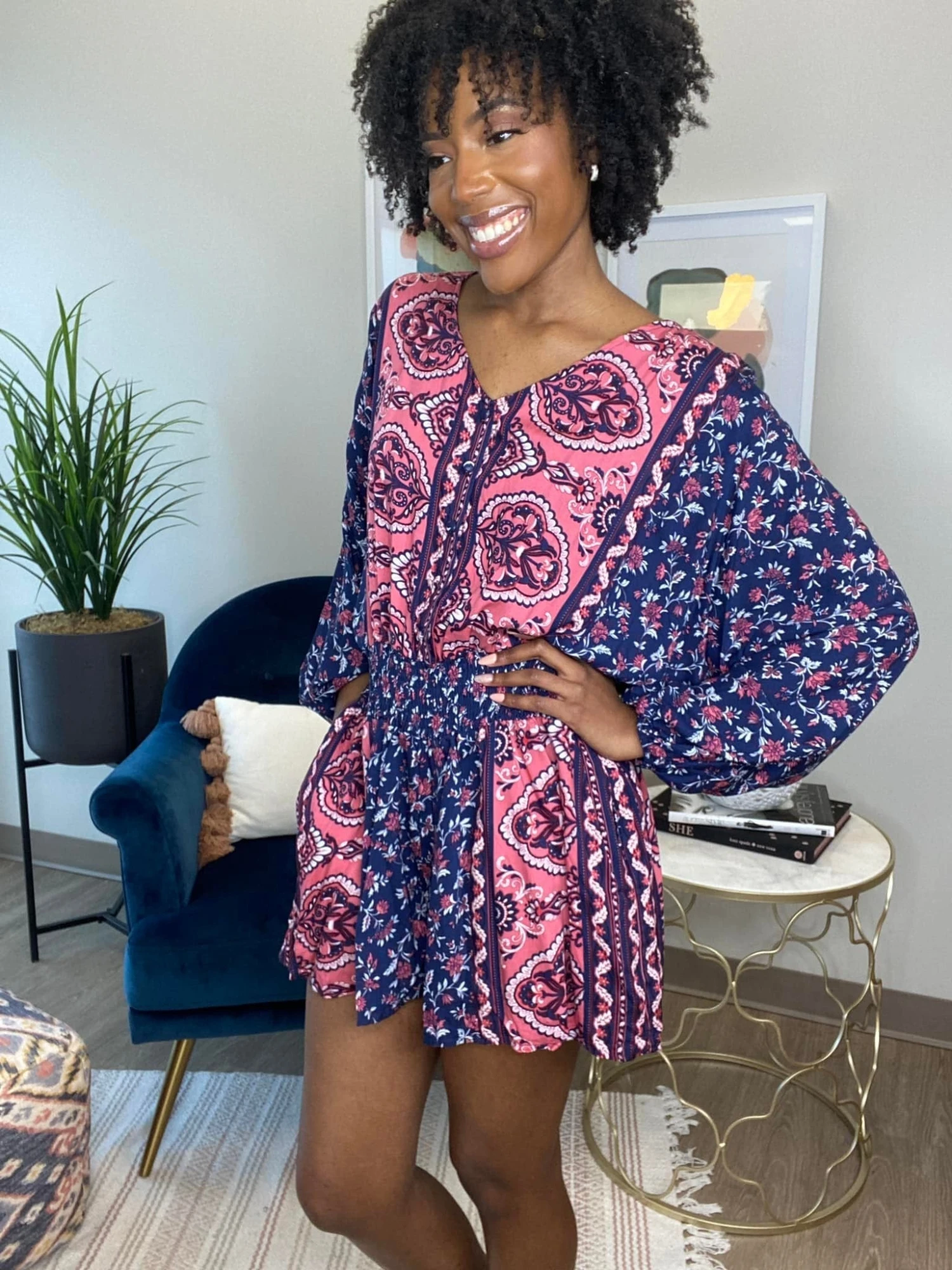 The “Feel Good Romper” has arrived! This boho number is a must have! With a touch of floral, you cannot go wrong here! Pair with some sandals or wedges, the possibilities are endless! Snag one before they sell out, you know they will!