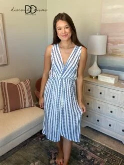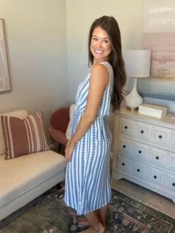 The “Feel That Way Dress” has arrived! This v-neck dress is a must have! With beautiful striped details, this one is a no brainer! Snag for the spring and summer seasons! You won’t regret it!