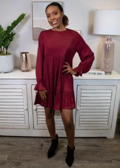 Features: Long sleeve, back keyhole detail, tiered dress, fully lined