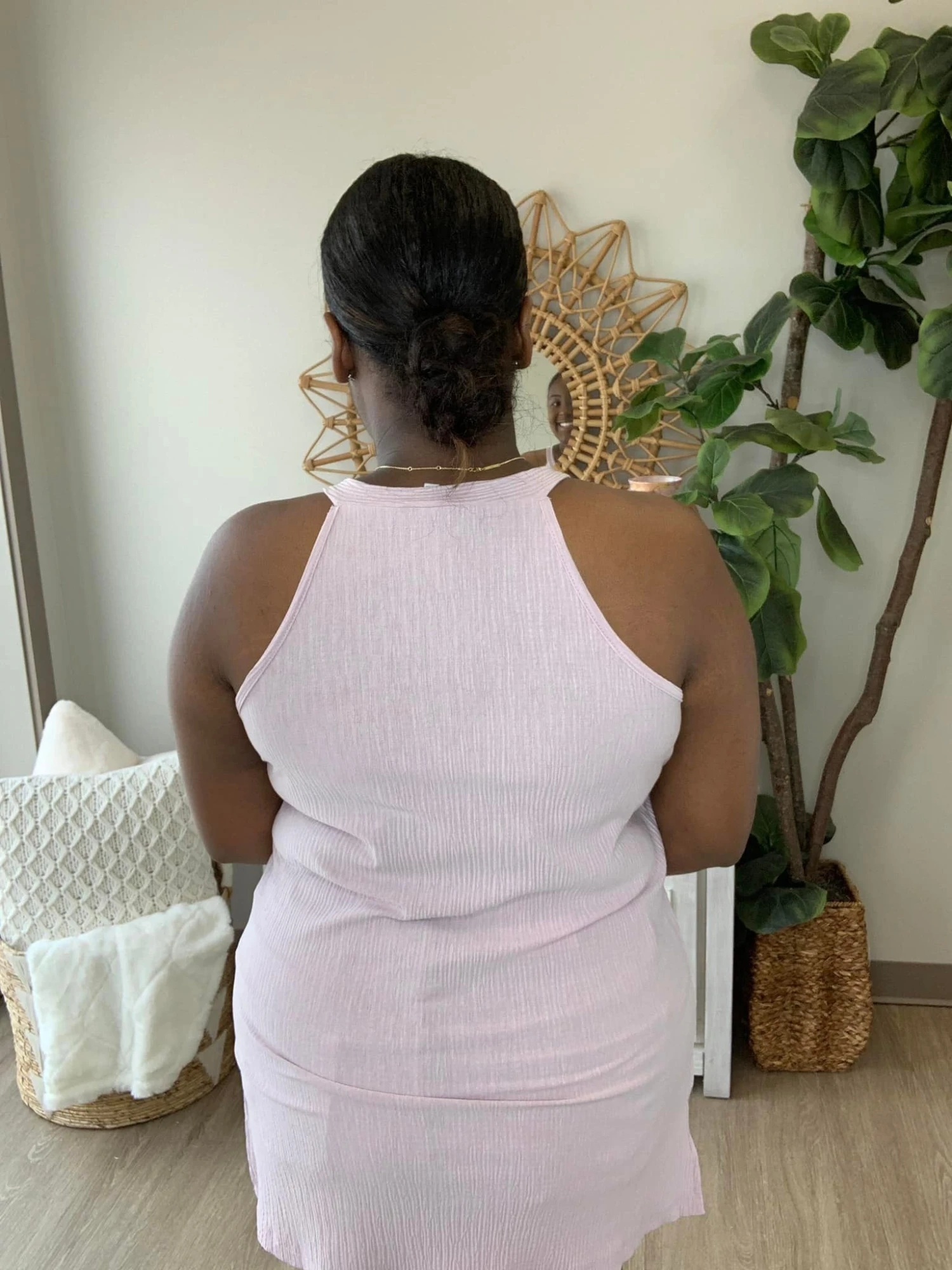 Emry: 5’5’ XL/L in tops and dresses, Size 14 In bottoms