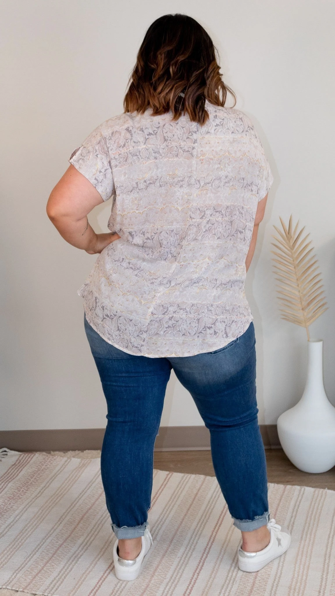 Check out this top, Divas! Look closely, because there is a twist in the front! Literally. Plus the floral paisley print is just perfect to go with your favorite jeans.
