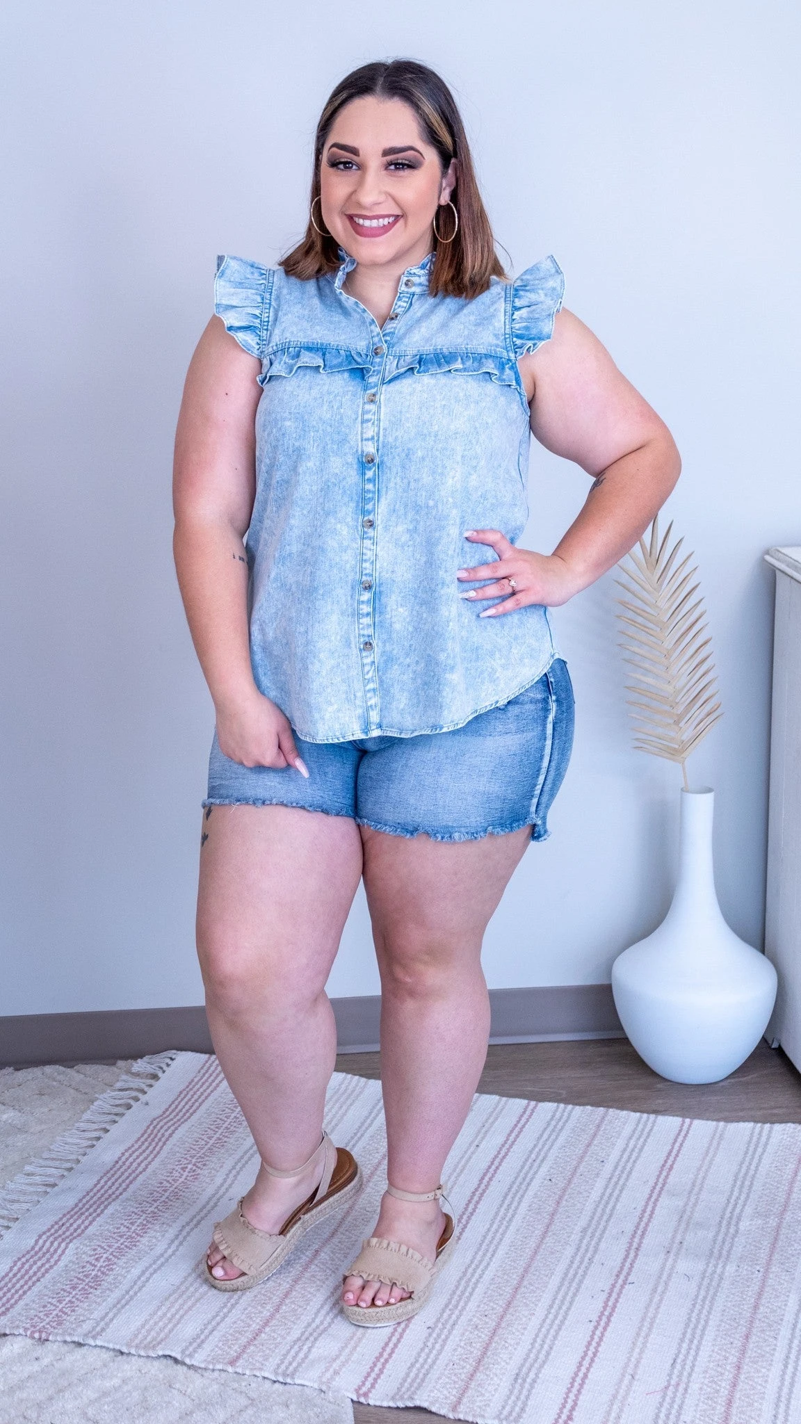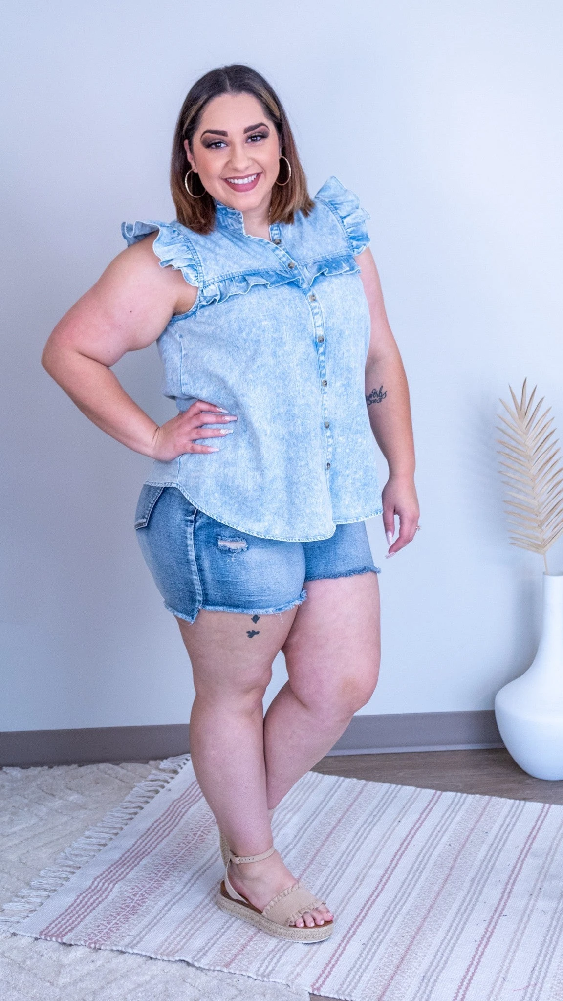 How adorable is the Finding Fate top? This denim top has a ruffle sleeve. How will you style this adorable top?