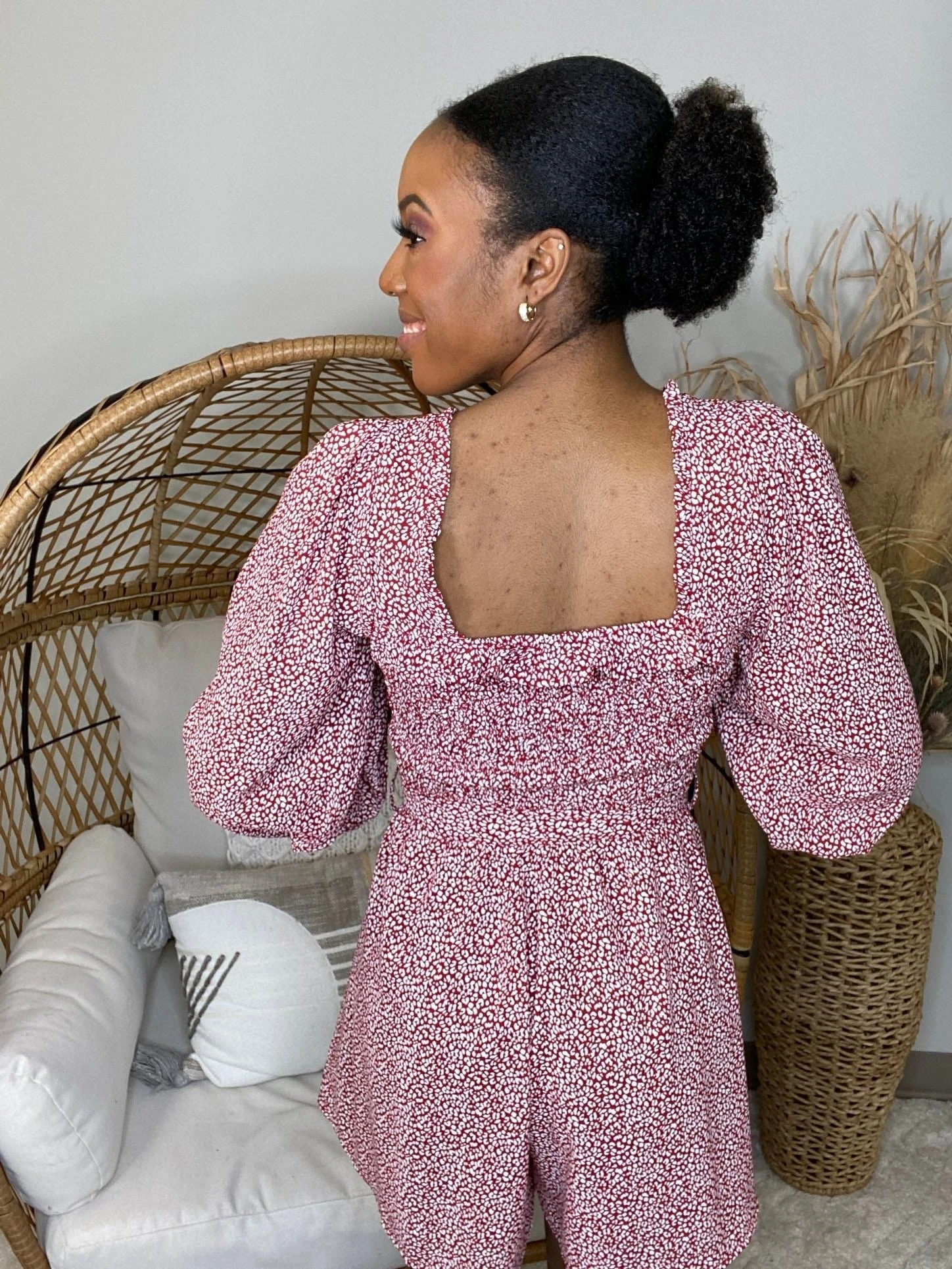 Features: Square Neck, Long Sleeve, Printed, Romper, Belt