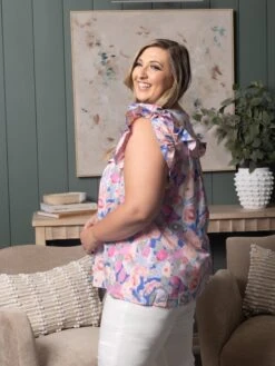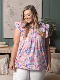 Features: Split Neck, Flutter Sleeves, Floral Print