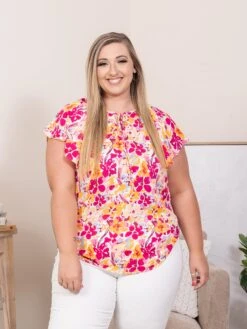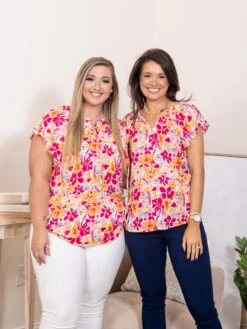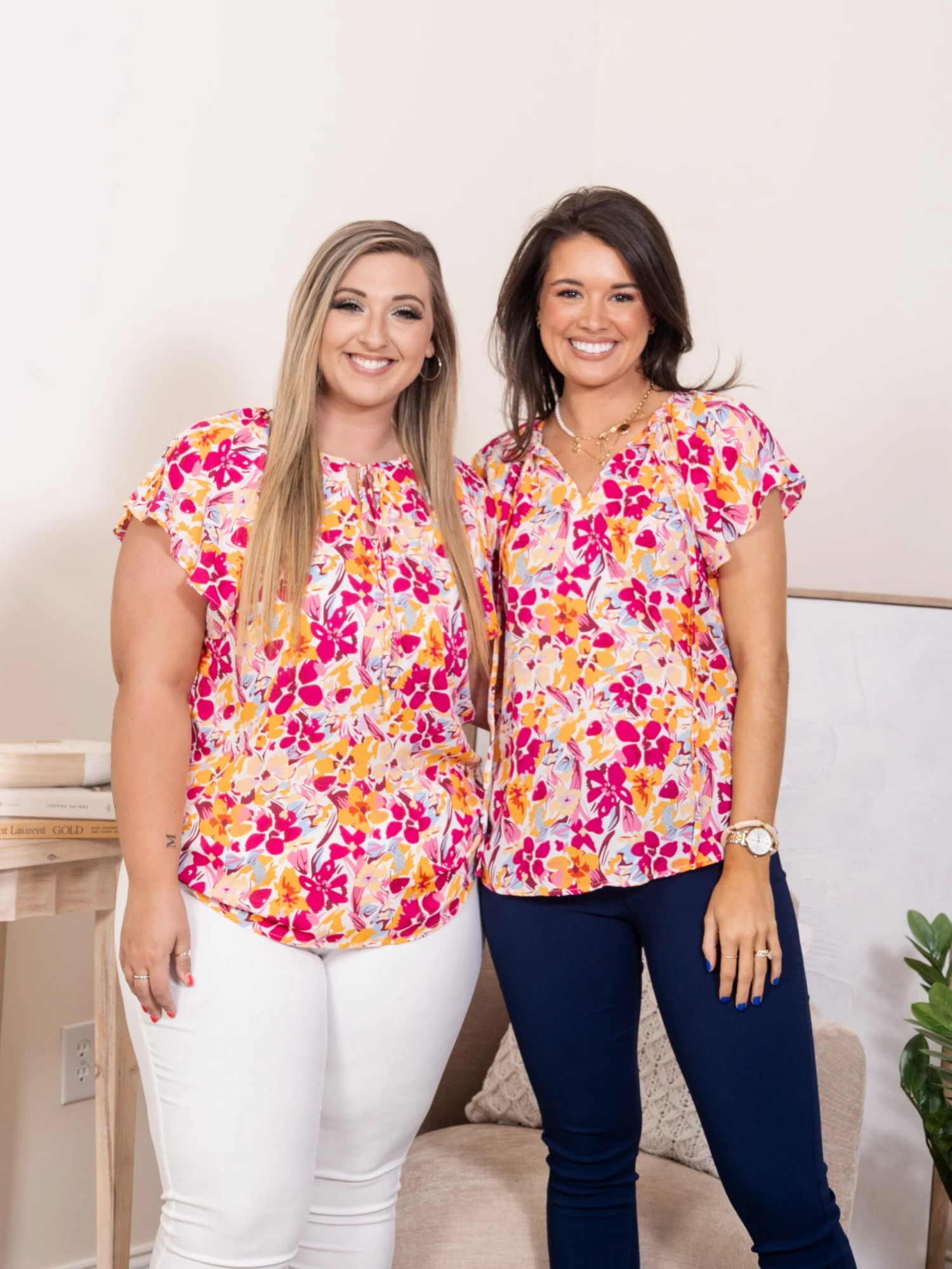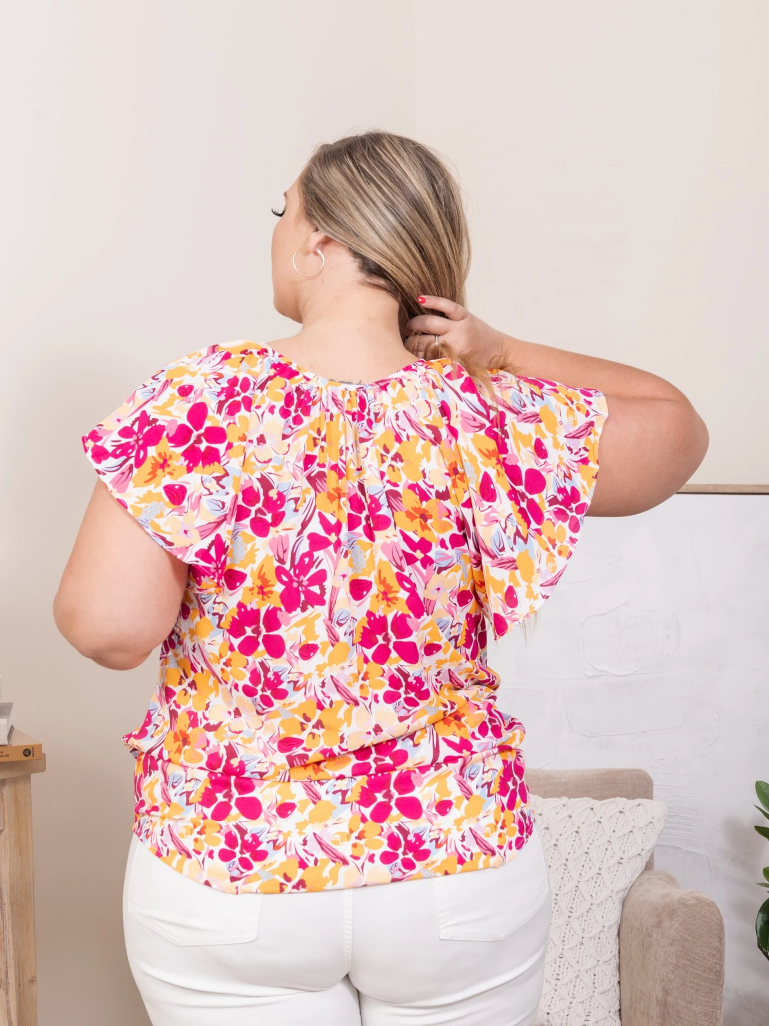 Features: Flutter Sleeve, Tied V Neck, Floral Print