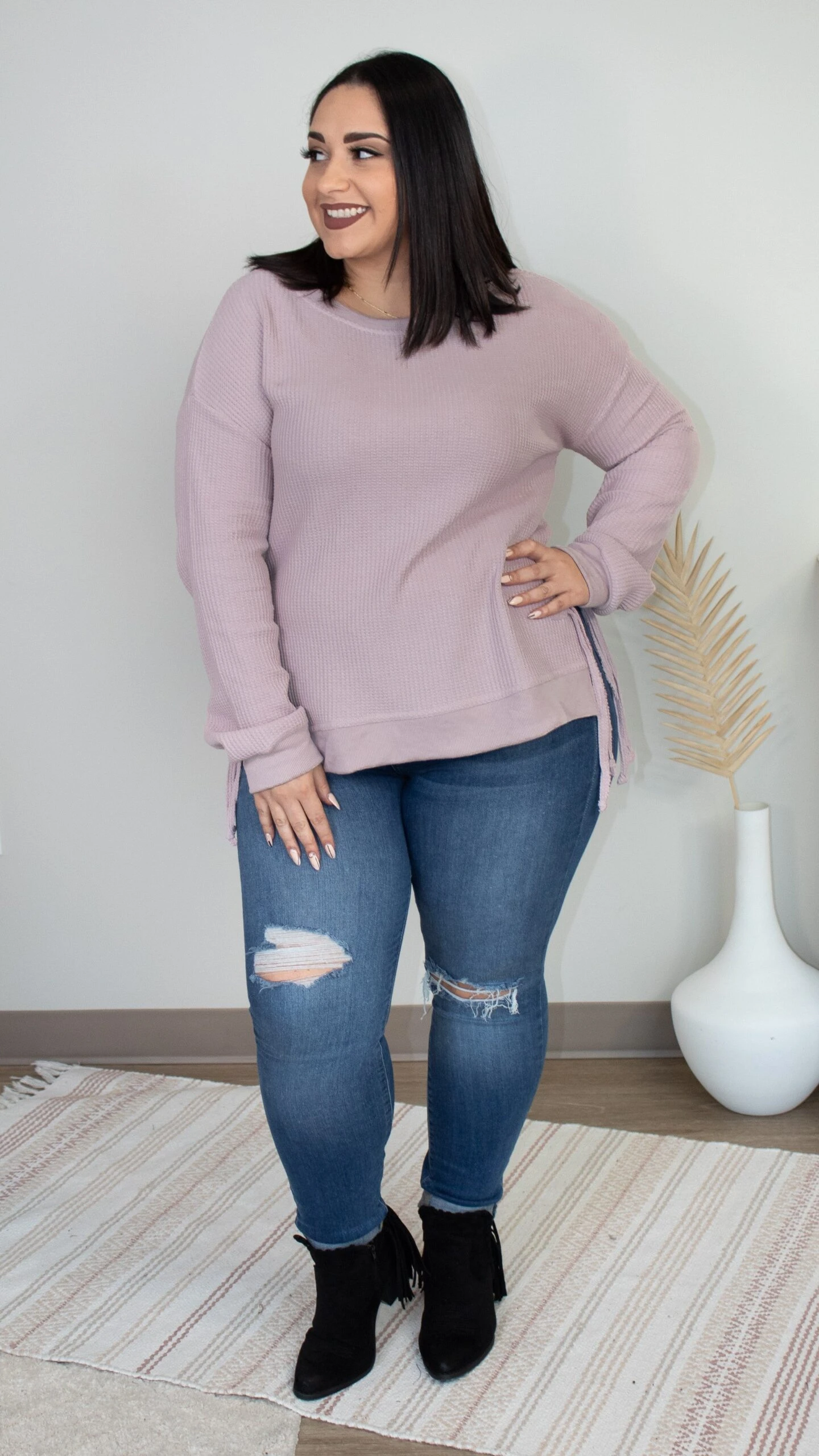 The Fond Of Fiji Top is so sassy with the side details! This top is a waddle knit material and features a round neck! Perfect to pair with denim and booties to finish off the look!