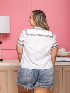 Features: V Neck, Short Sleeve, Embroidered, Top