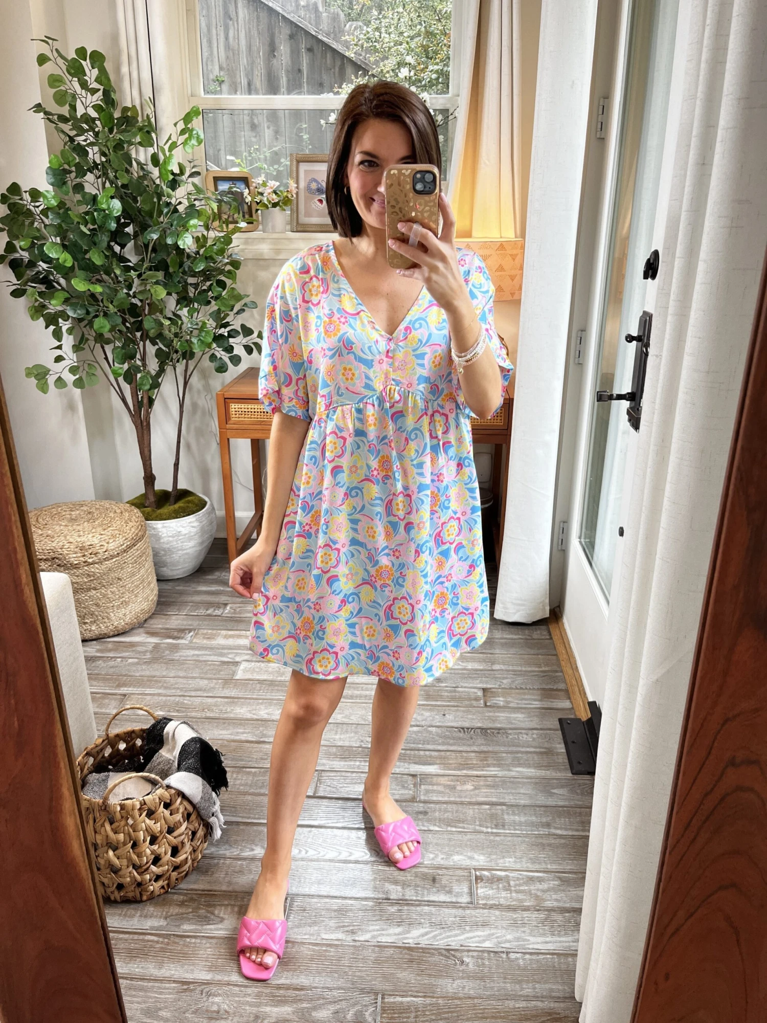 Check out the “Fun Floral Mini Dress”! The flowers are gorgeous and the fit is so flattering! You won’t regret snagging!