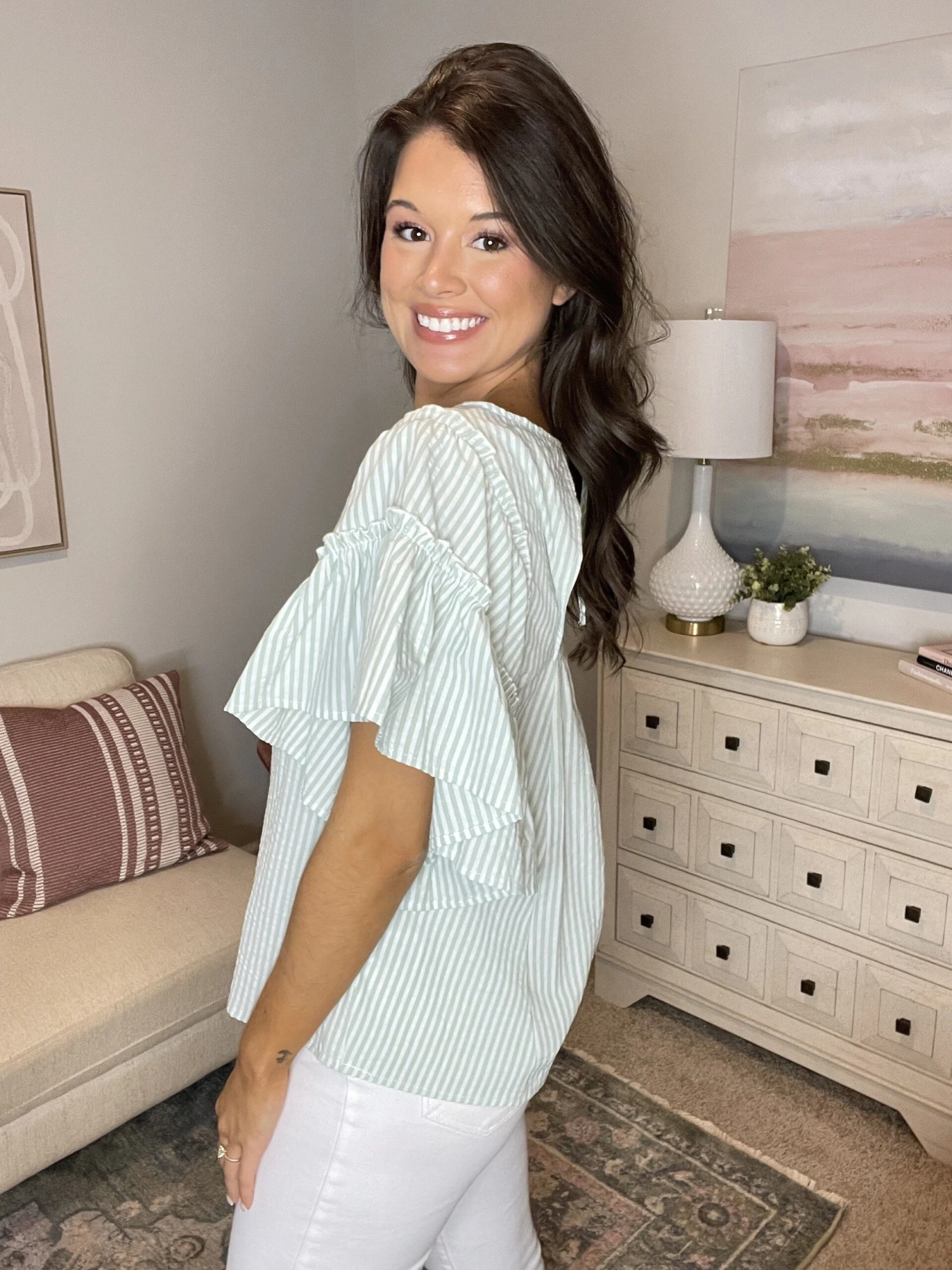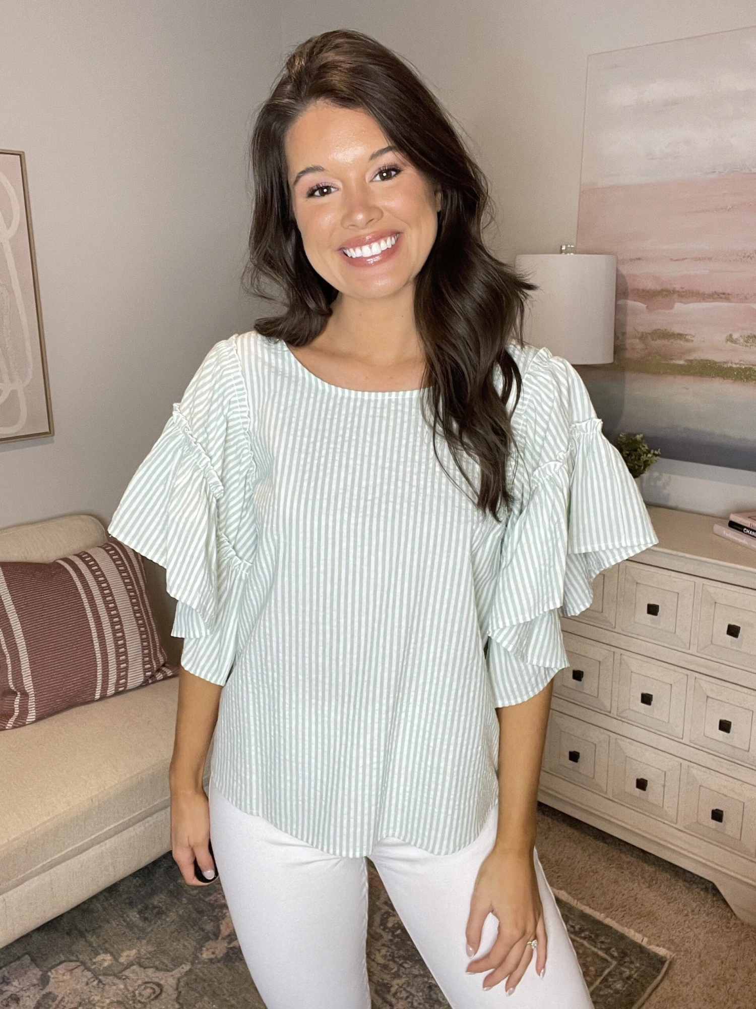 The “Going Through The Motions Top” has arrived! This adorable ruffle sleeved top is perfect for summer! We are loving this look ladies! Be sure to snag one before they sell out!