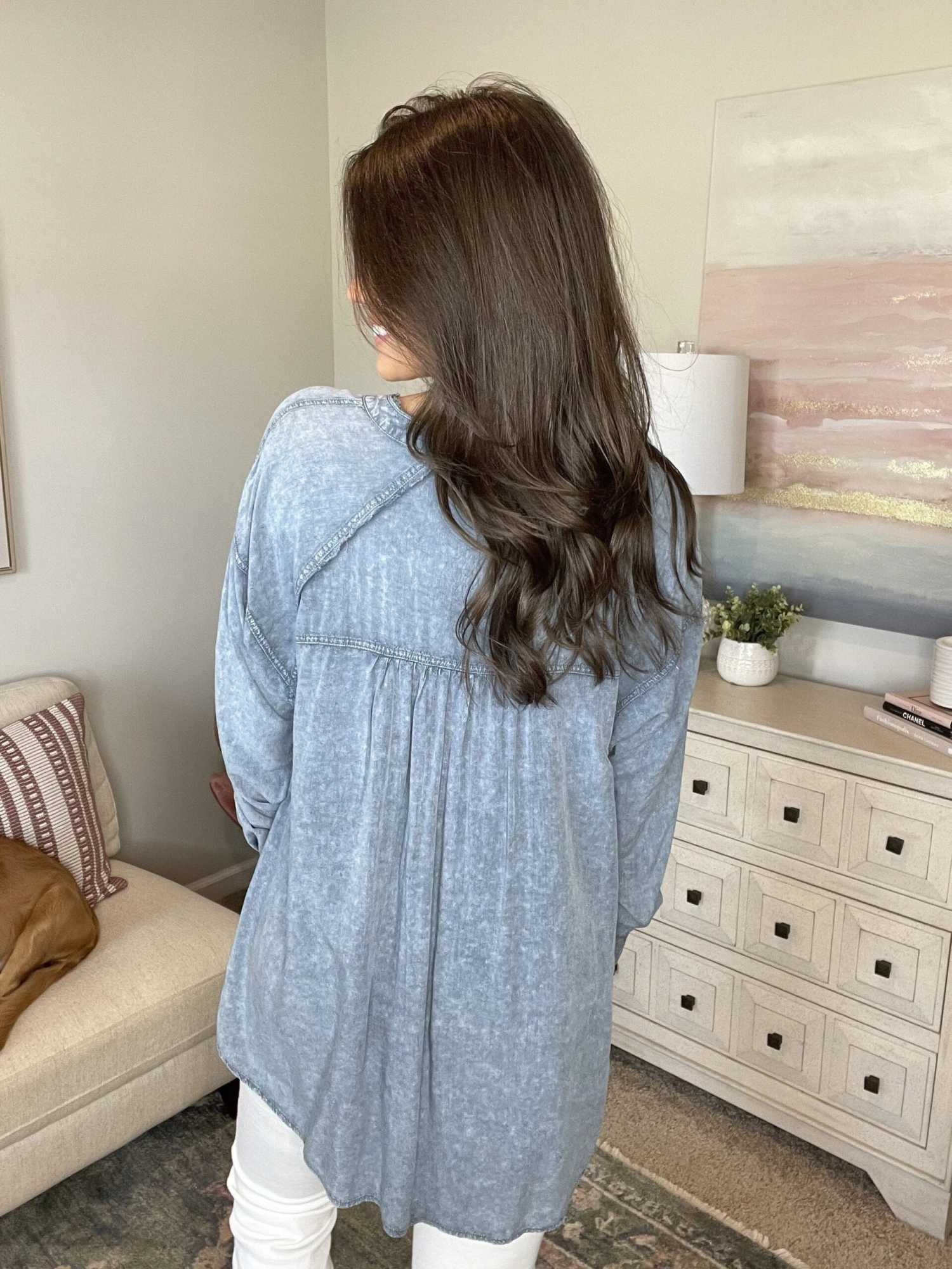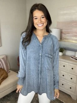 We are obsessed with the new “Happy Steak Tunic”! This super cute mineral washed navy tunic is everything! So stylish and flattering! Be sure to snag!