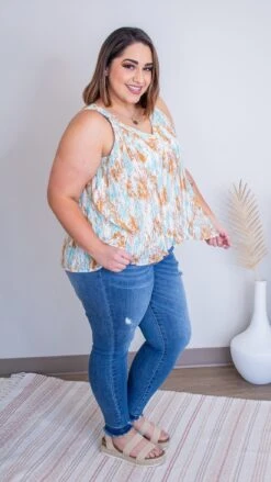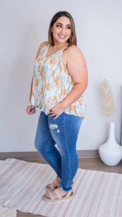 The Heals In Hand Top features a pleated design with a water color print. This one can be dressed up or be a casual date night option. Snag her up while you can divas.