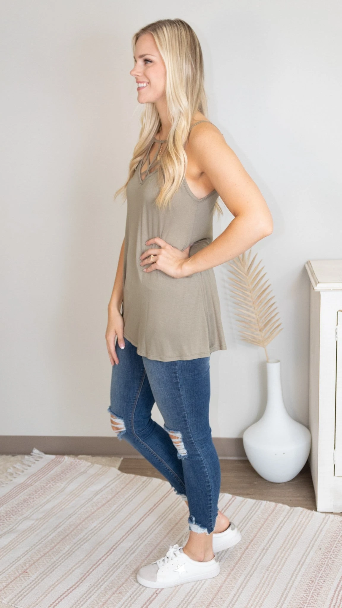 The Heart Of Glass Top is SO cute! We are loving the back detail and adjustable straps. It also comes in 4 beautiful colors that would look good in any season! Pair with shorts for summer or throw a denim jacket over it for the fall!
