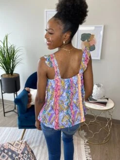 The “Here To Stay Top” has arrived! This adorable multi colored top belongs in your wardrobe! You can’t go wrong with the ruffle straps and sleeveless look! Be sure to snag one before they are gone!
