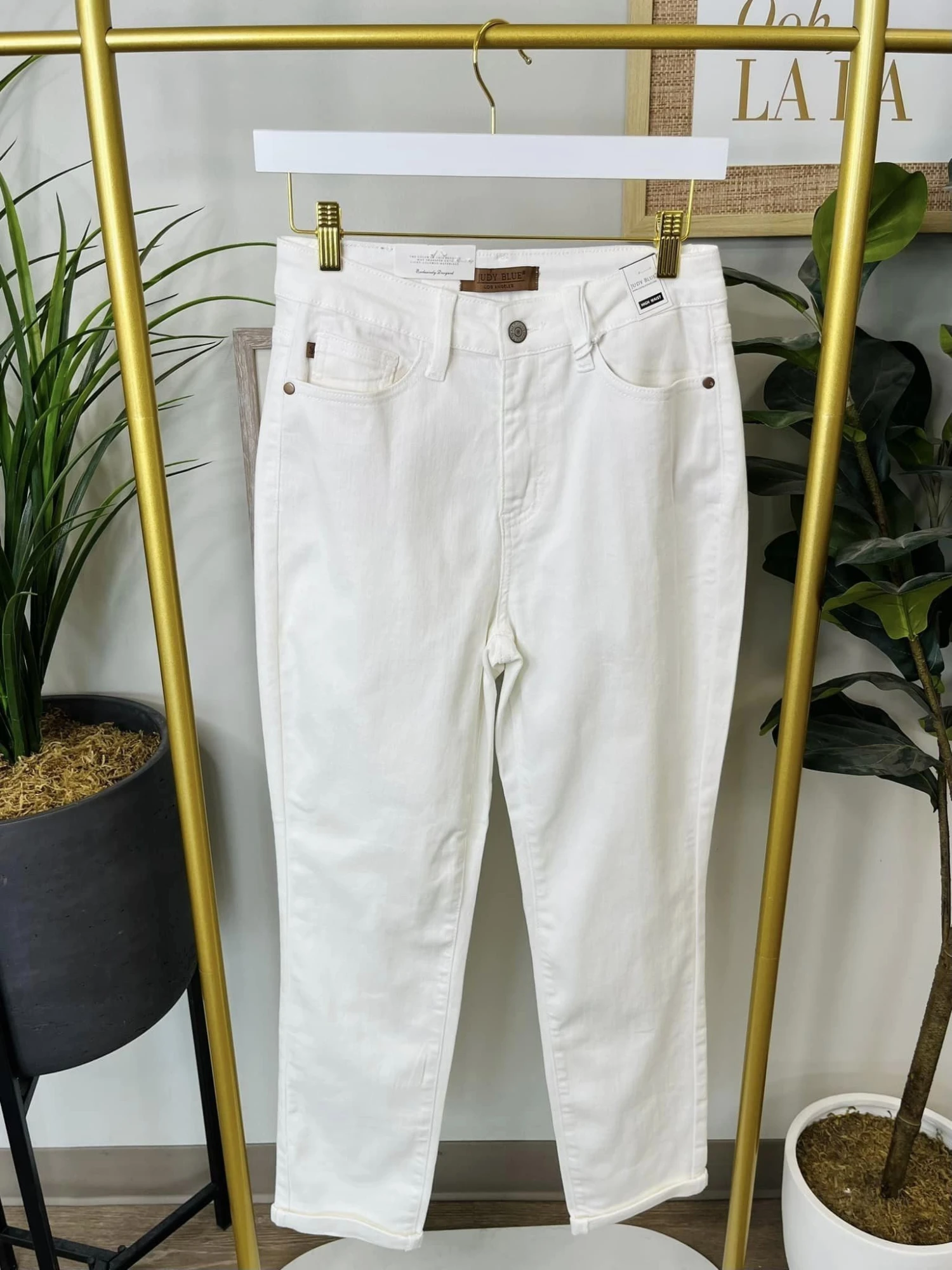 Everyone needs a good pair of white denim and the “High Waist Double Cuff Boyfriend Jeans” are the perfect pair! Stylish and trendy, you know you will be looking so good in these! Don’t miss out, snag a pair today!