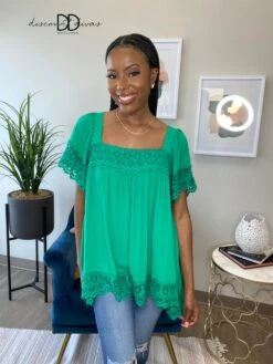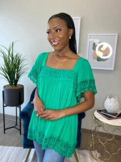 The “Honey Please Top” has arrived! This short sleeve top is a must have! With a square neckline and embroidered details, you cannot go wrong here! Pair with any white or blue denim for the perfect look! Snag one before they sell out!