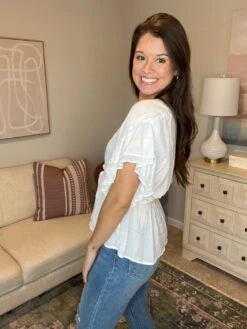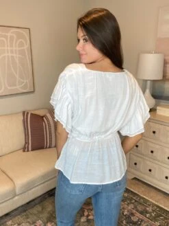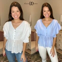The ” Hustle And Grind Top” has arrived! This ruffle sleeve top is a must have! With an elastic waistband, this one will flatter anyone and everyone! Pair with denim, you cannot go wrong! Snag one before they are gone!